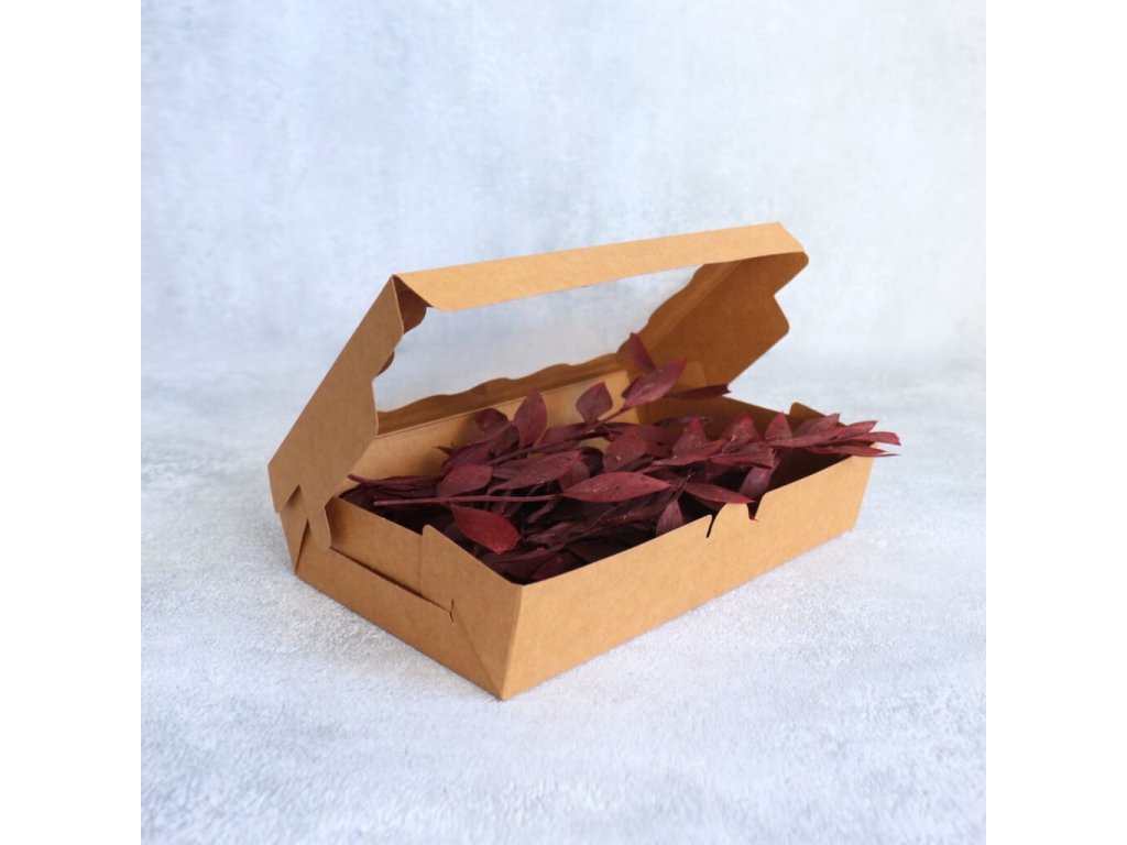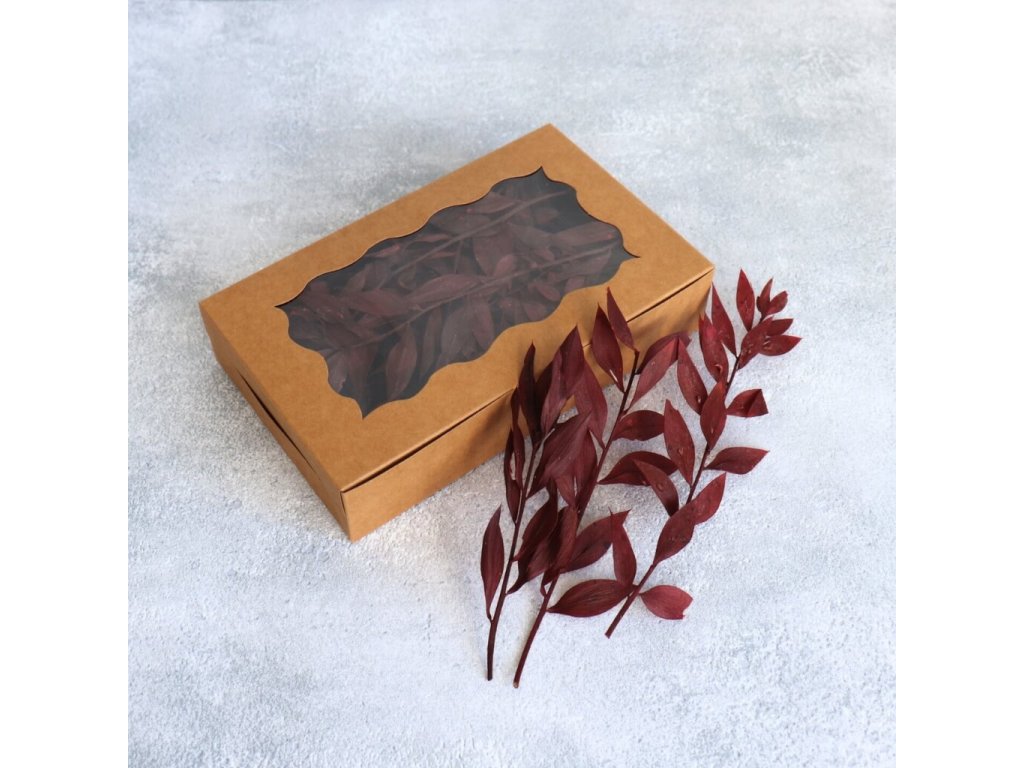 Dekorativní ruscus v bordó odstínu je výrazný prvek, který dodá vašim aranžmá hloubku a noblesu. V boxu najdete větvičky různých velikostí, vhodné k aranžování do kytic, věnců i menších dekorací.