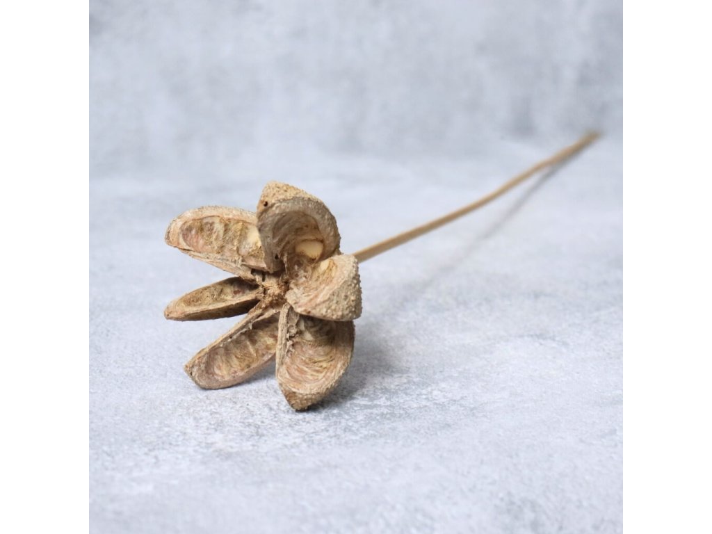 Sušené květy Bullet v přírodním odstínu, zvané také „Indický kaštan“, jsou skvělým dekoračním prvkem pro rustikální, sváteční i moderní aranžmá. Díky dřevěnému stonku se snadno zapichují do kytic, stolních dekorací nebo aranžovacích hmot a dodávají jim přirozenou texturu a objem.