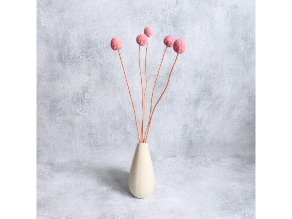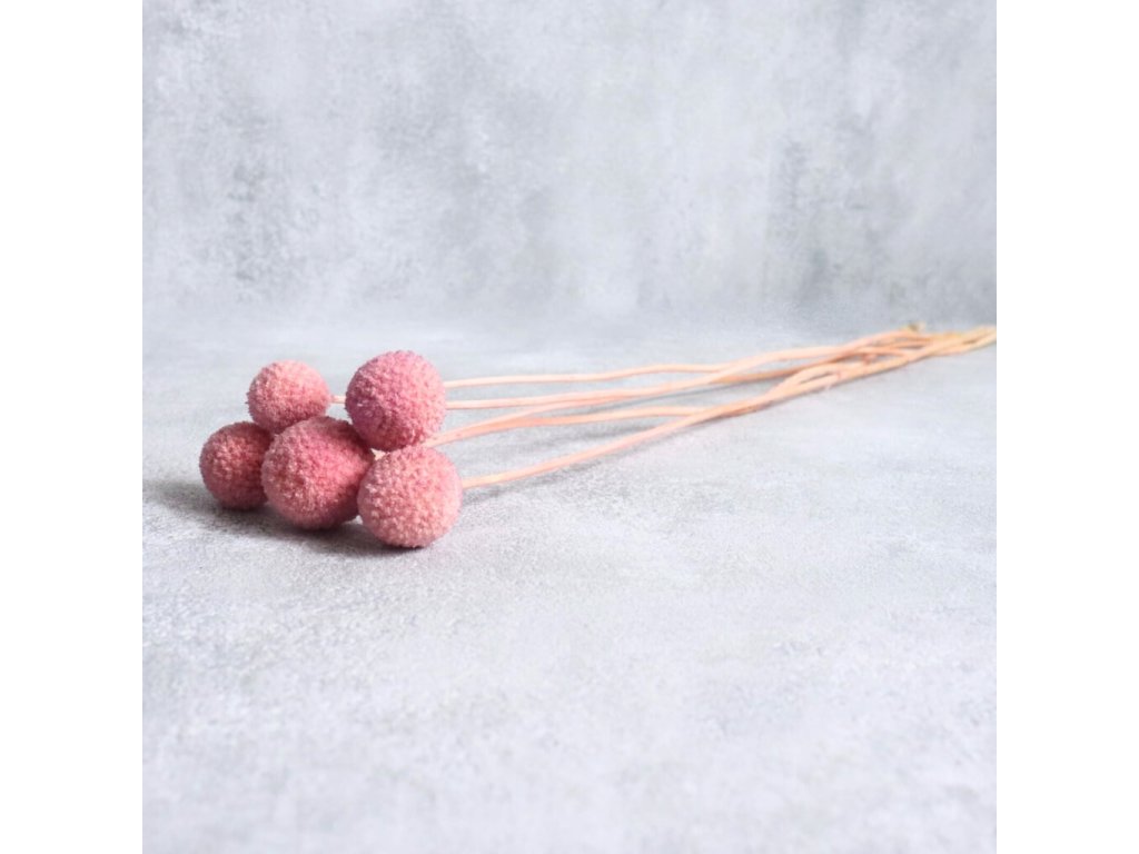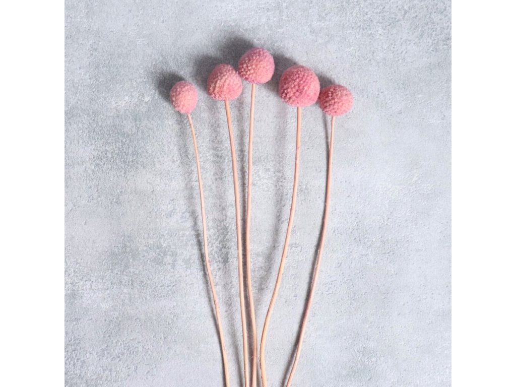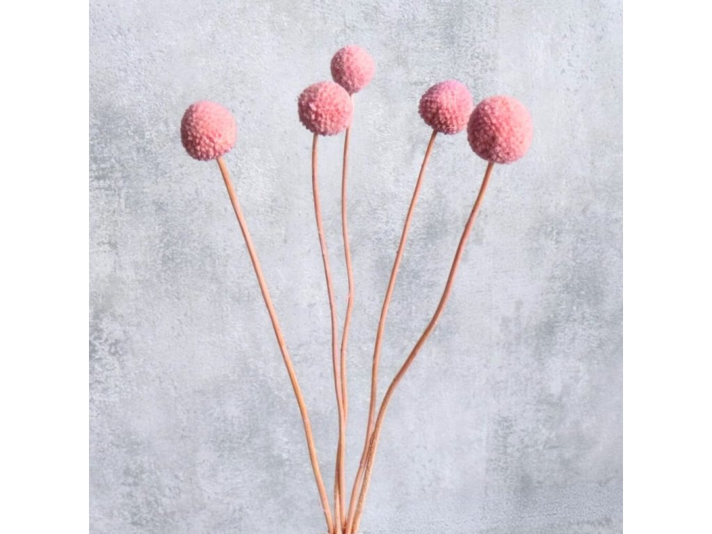 Sušená Craspedia ve flider odstínu je originálním a nepřehlédnutelným doplňkem pro květinová aranžmá i dekorace. Její typické kulaté květy na pevných stoncích dodávají kompozicím strukturu, hravost a moderní charakter. Jemný fialovo-růžový tón působí elegantně a zároveň svěže, díky čemuž se skvěle hodí do jarních i celoročních aranžmá.
