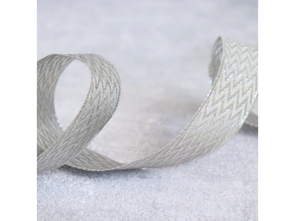 Stylová tkaná stuha ve stříbrném odstínu s jemným vzorem dodá vašim dekoracím sofistikovaný a slavnostní vzhled. Lesklý povrch působí luxusně a krásně odráží světlo, díky čemuž vynikne v každém aranžmá. Stuha je opatřena ohebným tvarovacím okrajem (drátky v lemu), který umožňuje snadné formování mašlí, záhybů a dekorativních detailů.