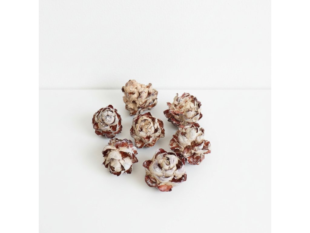 Šišky Pubescens v bělené úpravě jsou elegantním přírodním prvkem, který krásně vynikne v moderních, zimních i svatebních dekoracích. Světlý povrch dodává šiškám jemnost a nadčasový vzhled, díky kterému působí decentně, ale přesto výrazně.