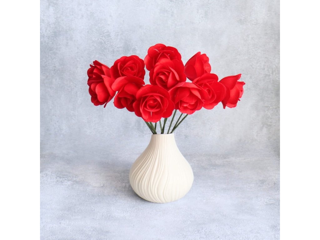 Červená růže z dřevěné dýhy působí výrazně a elegantně, a proto je ideální volbou pro svatební, slavnostní i romantické dekorace. Větší průměr květu dodá aranžmá dominantní vzhled, který krásně vynikne v kombinaci s přírodní zelení, sušenými květinami nebo jemnými neutrálními tóny.