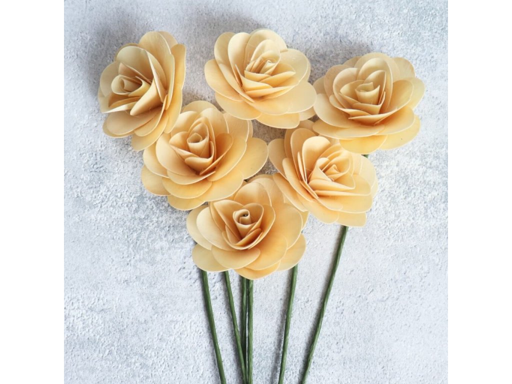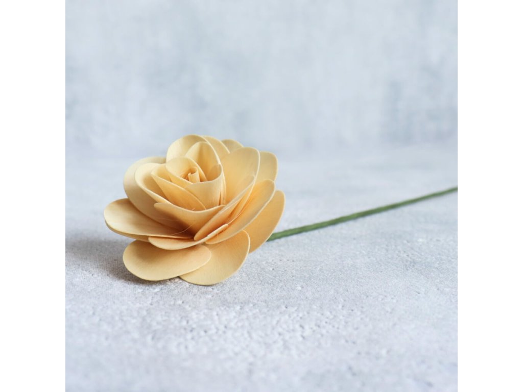 Jemná a nadčasová dekorace, která vynikne v každém aranžmá. Tato růže z dřevěné dýhy působí díky svému detailnímu zpracování a přirozené barvě elegantně a sofistikovaně. Skvěle se hodí do svatebních, romantických i přírodně laděných dekorací.