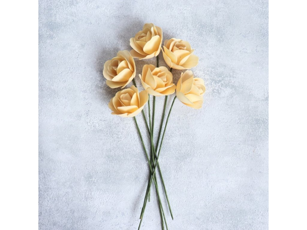 Dekorační růže vyrobená z jemné dřevěné dýhy v přírodní barvě je elegantním a netradičním doplňkem pro vaše aranžmá. Díky drátěnému stonku ji lze snadno tvarovat a začlenit do kytic, věnců či dalších dekorativních projektů. Přirozený odstín dřeva dodává květině nadčasový a univerzální vzhled, který ladí s různými styly interiéru.