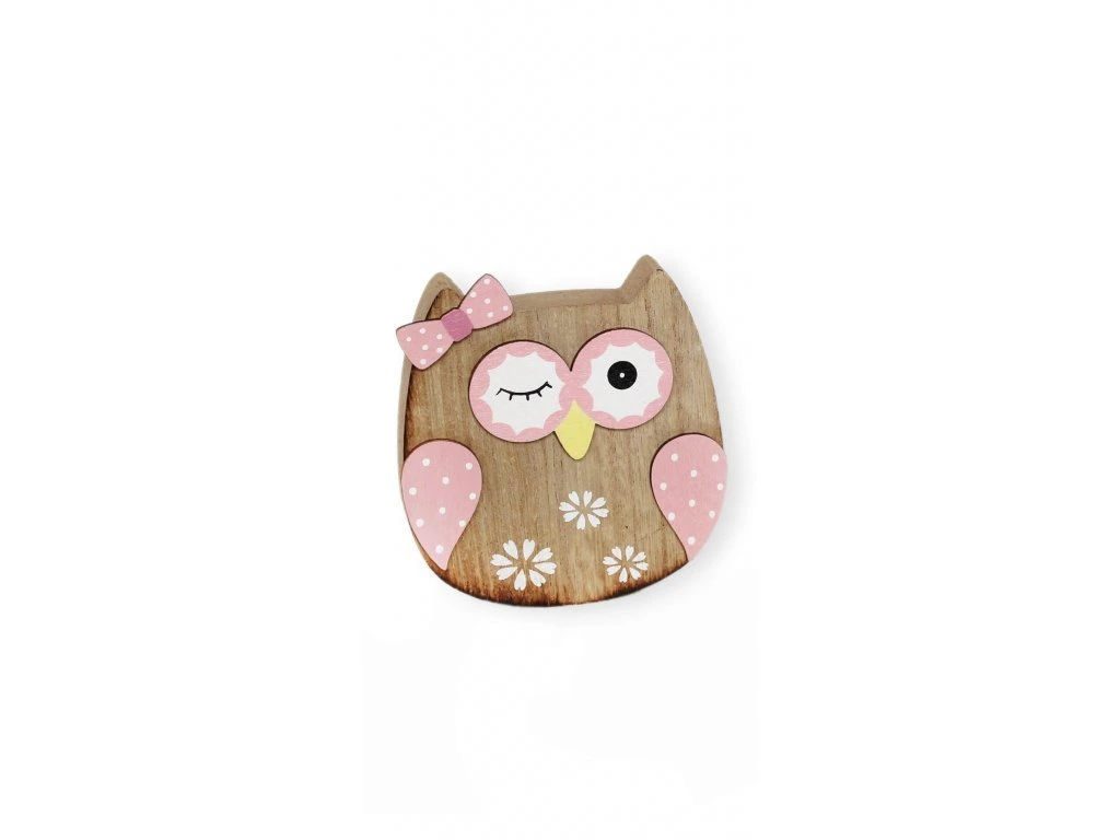 Dekorace dřevěná sova – 10,5 cm, přírodní