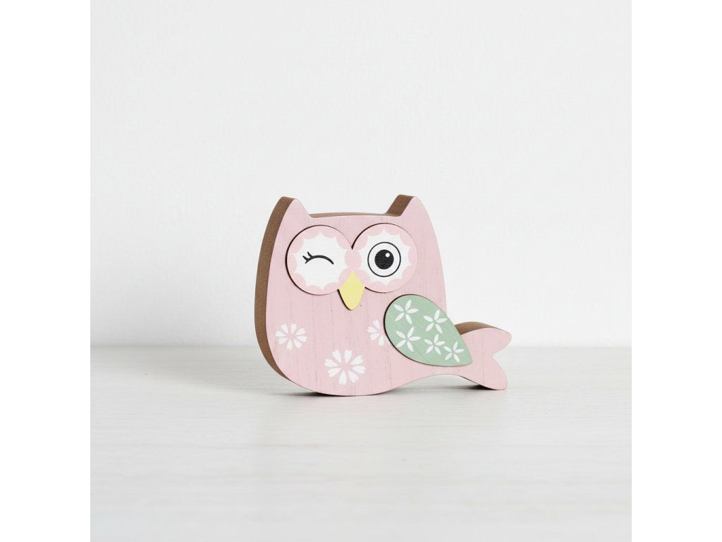 Dekorace dřevěná sova – 10,5 cm, růžová