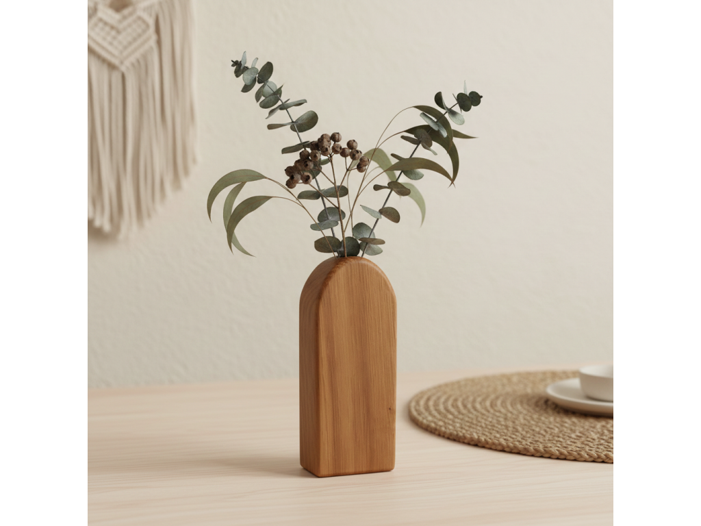 Přírodní dřevo dodává váze hřejivý tón a jedinečnou kresbu, takže každý kus je originál. Skvěle zapadne do moderního interiéru, boho stylu i přírodně laděného prostoru. Umístěte ji na komodu, jídelní stůl nebo poličku a získáte dekoraci, která působí klidně, přirozeně a zároveň designově.