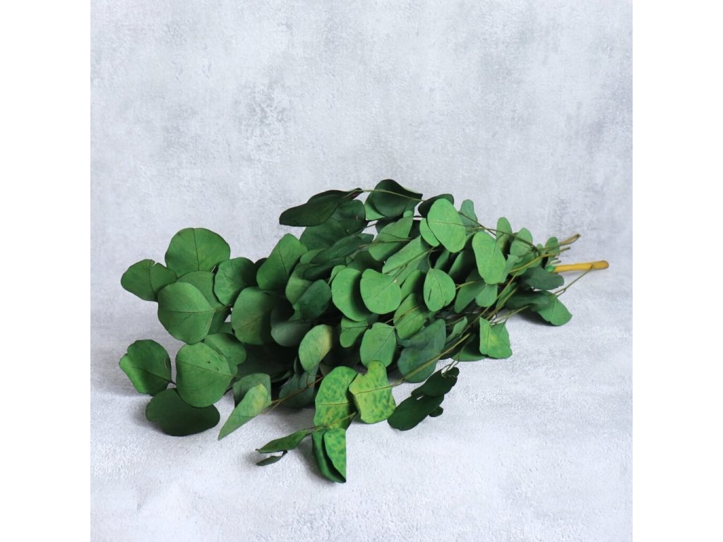 Díky procesu stabilizace si eukalyptus uchovává svůj vzhled i pružnost po dlouhou dobu, aniž by vyžadoval jakoukoli údržbu. Je ideální pro svatební kytice, věnce, interiérové dekorace nebo sezónní aranžmá, kde vynikne svou sytou zelení a přírodní strukturou.