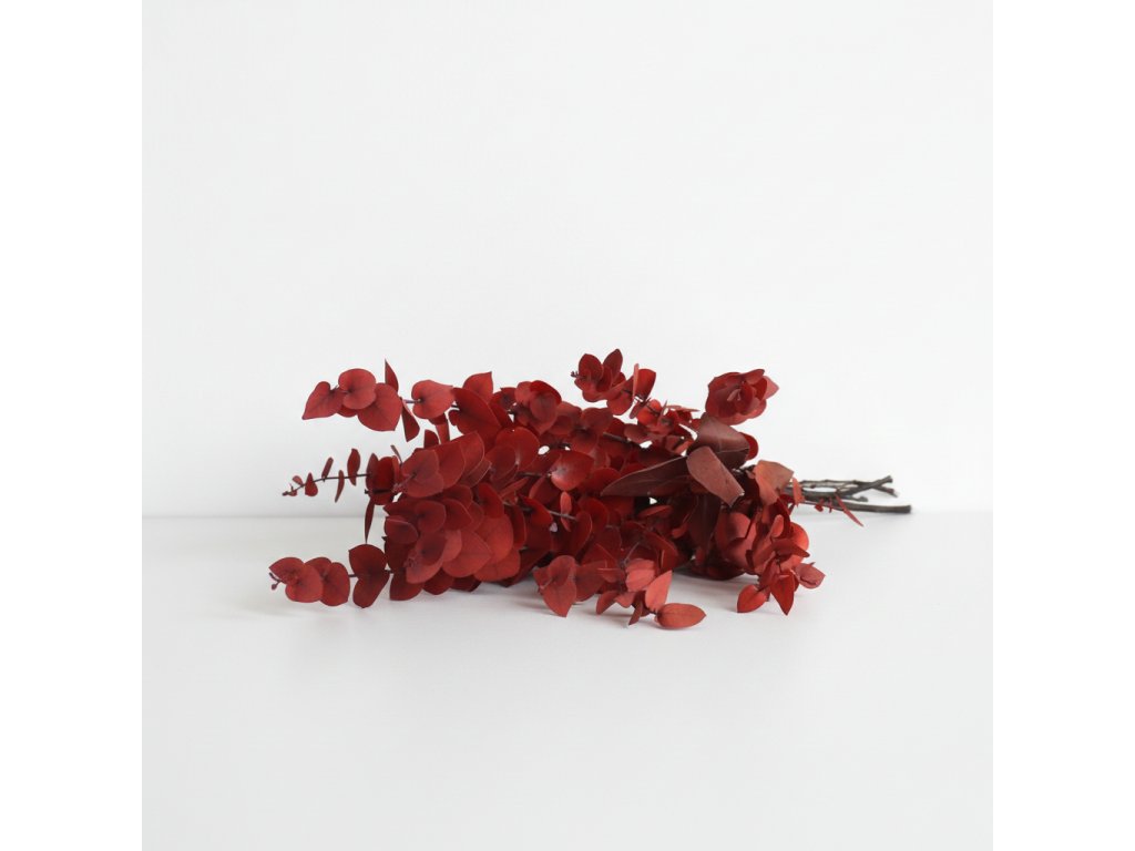 Stabilizovaný eukalyptus Stuartiana v červeném odstínu je dokonalým prvkem pro moderní i rustikální aranžmá. Díky procesu stabilizace si zachovává svůj přirozený vzhled a pružnost po dlouhou dobu, takže je ideální volbou pro trvalé dekorace bez nutnosti údržby.
