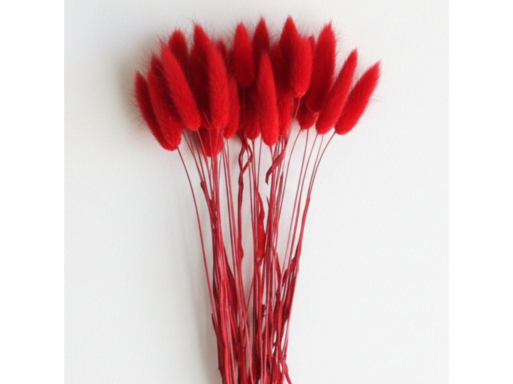 Červený Lagurus se skvěle hodí do vázy, suchých kytic, věnců i kreativních aranžmá. Krásně vynikne v kombinaci s neutrálními sušenými květinami, travinami nebo eukalyptem a umožňuje vytvářet výrazné i elegantní kompozice. Díky své lehké struktuře dodává aranžmá objem, aniž by působilo těžce nebo přeplněně.