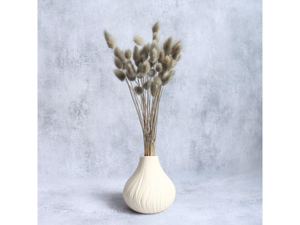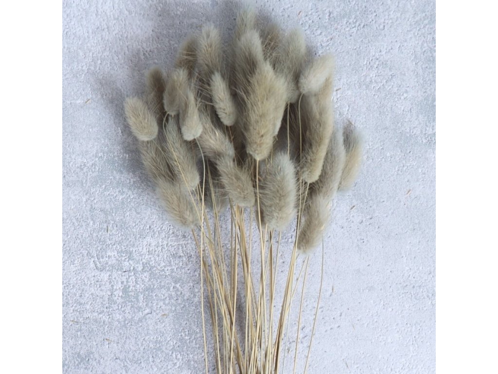 Lagurus ovatus, známý jako „zaječí ocásky,“ v elegantním šedém odstínu je jednou z nejoblíbenějších sušených květin pro moderní dekorace. Jeho měkké, sametové klasy přidávají dekoracím jemnost a styl, který se skvěle hodí do minimalistických, vintage i boho interiérů. Tento Lagurus je ideální pro výrobu dekorací na stůl, věnců nebo obrazových rámů, ale i jako samostatná dekorace do vázy nebo v kombinaci s dalšími sušenými květinami, jako je Nigella, Len nebo Broom Bloom.