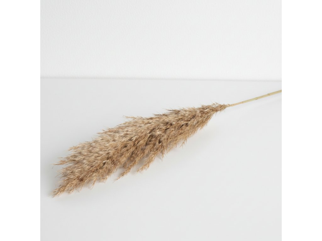 Pampová tráva v přírodním odstínu patří mezi nejoblíbenější dekorace do interiéru. Její dlouhé, nadýchané klasy dodávají aranžmá lehkost, objem a přirozený pohyb. Skvěle vynikne jako samostatná dekorace ve váze i jako součást kombinací se sušenými květinami a travinami.