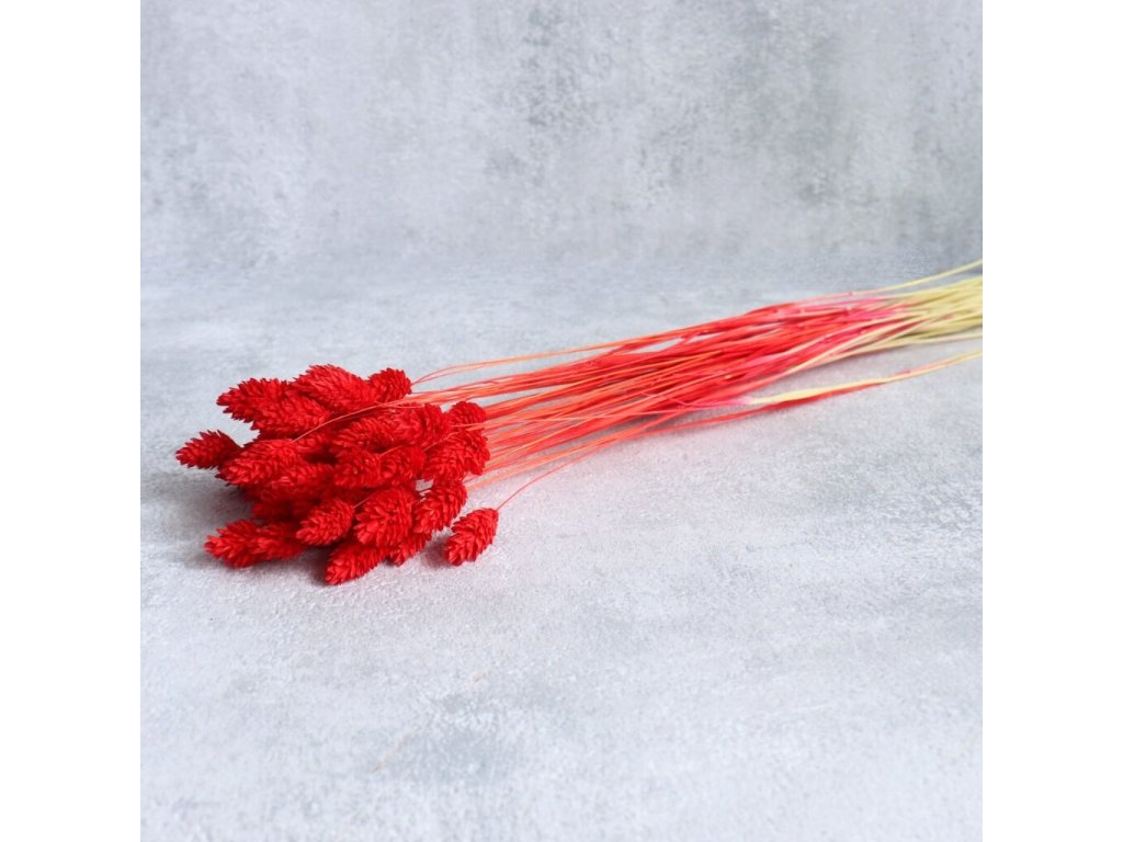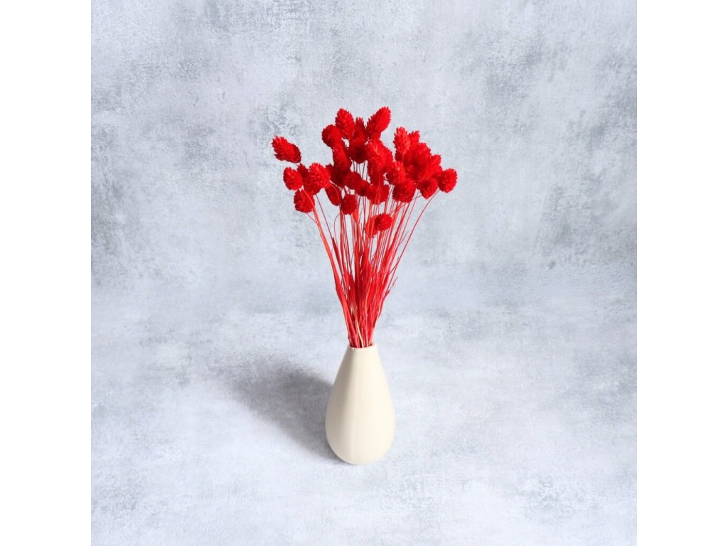 Sušená chrastice (Phalaris) v sytě červeném odstínu přináší do aranžmá energii a vášeň. Její drobné, hustě uspořádané klasy dodávají každé dekoraci zajímavou texturu a živost. Červený Phalaris je ideální volbou pro podzimní a zimní výzdoby, sváteční kytice nebo moderní interiéry, které potřebují výrazný přírodní akcent.
