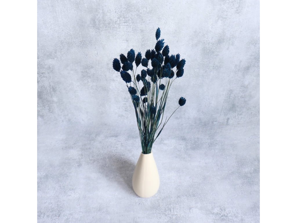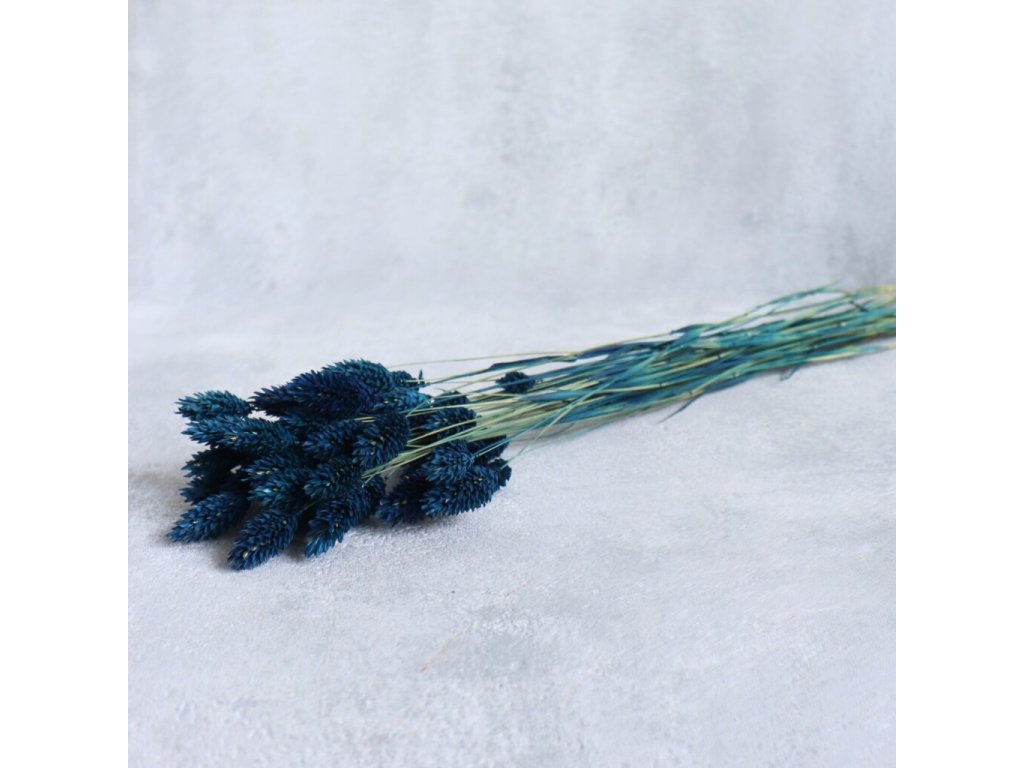 Sušený Phalaris v hlubokém tmavě modrém odstínu přináší do interiéru výrazný kontrast a eleganci. Jeho husté, jemně texturované klasy dodávají aranžmá dynamiku a moderní nádech. Tmavě modrý Phalaris je skvělou volbou pro luxusní a elegantní výzdobu, svatební kytice nebo moderní interiérové dekorace, kde krásně vynikne v kombinaci se světlými a neutrálními tóny.