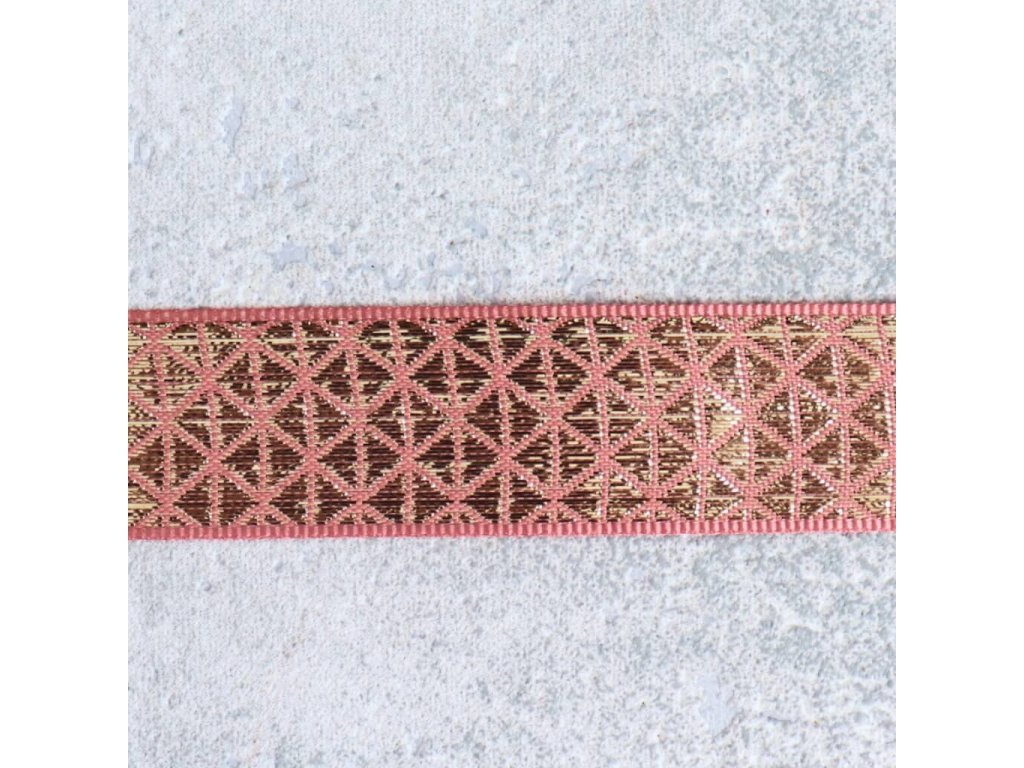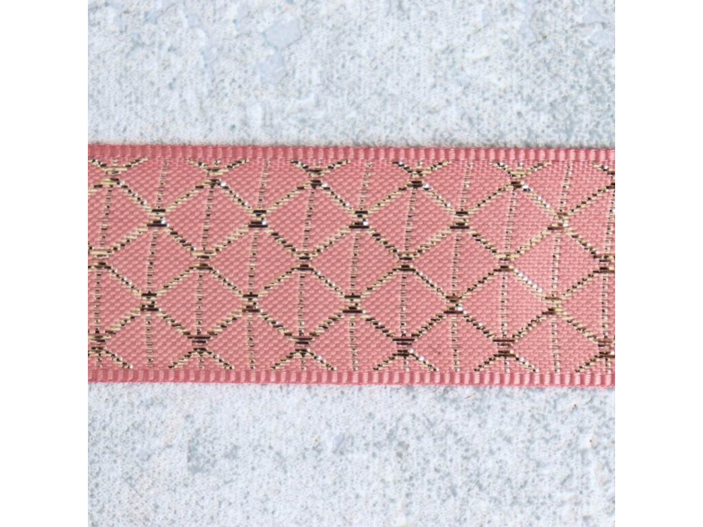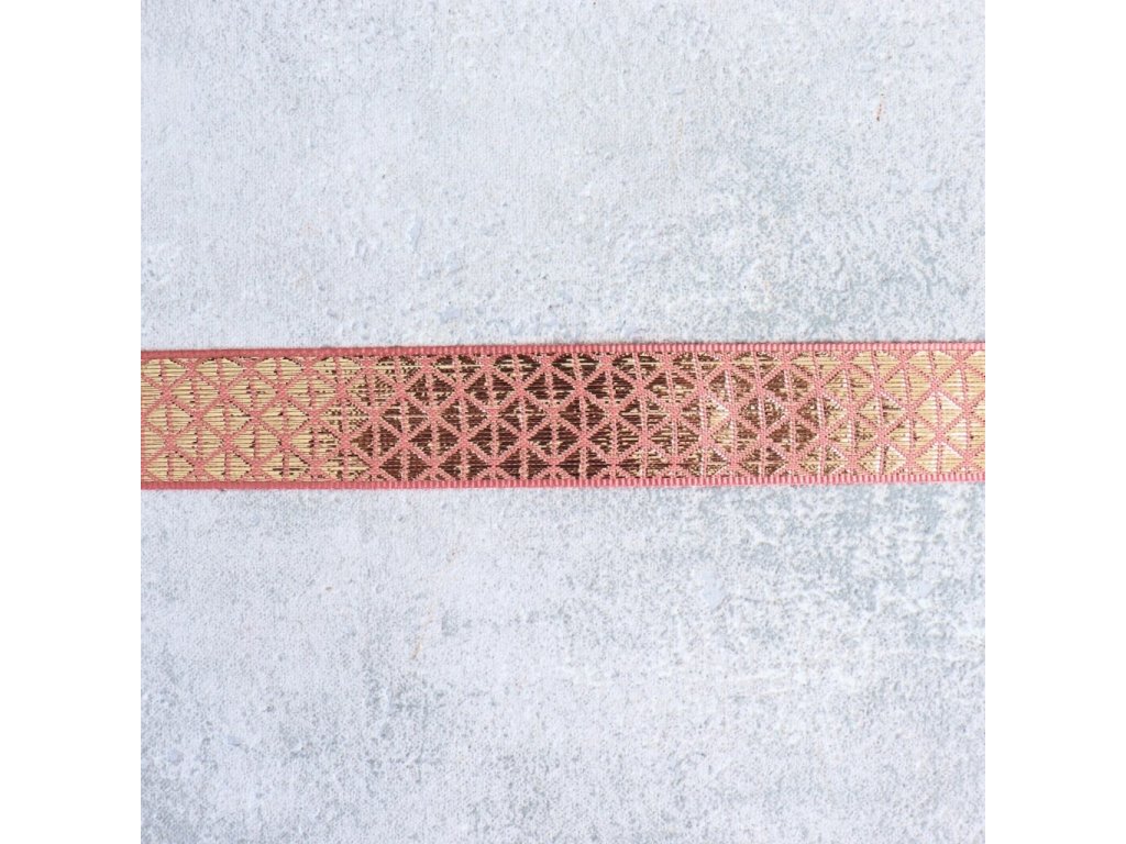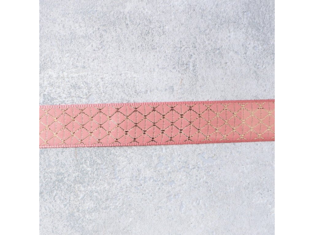 Plátnová stuha se zlatým vzorem 25mm - starorůžová/zlatá