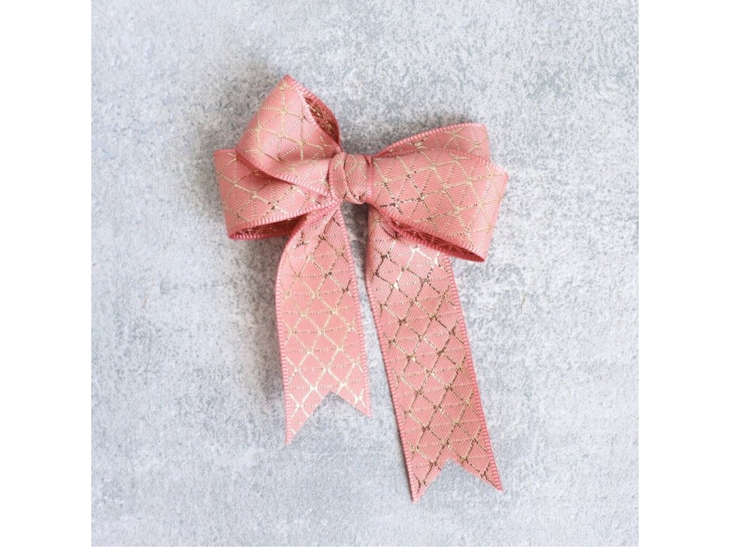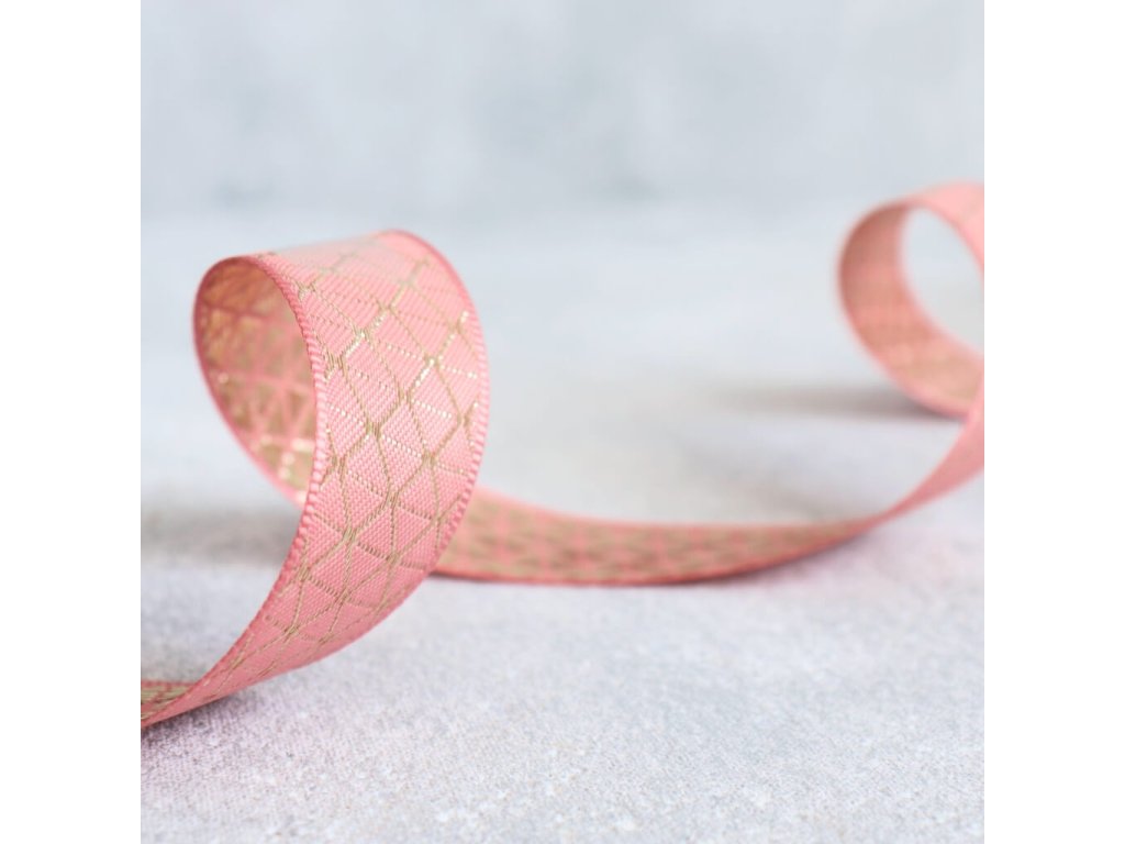 Plátnová stuha se zlatým vzorem 25 mm – starorůžová / zlatá