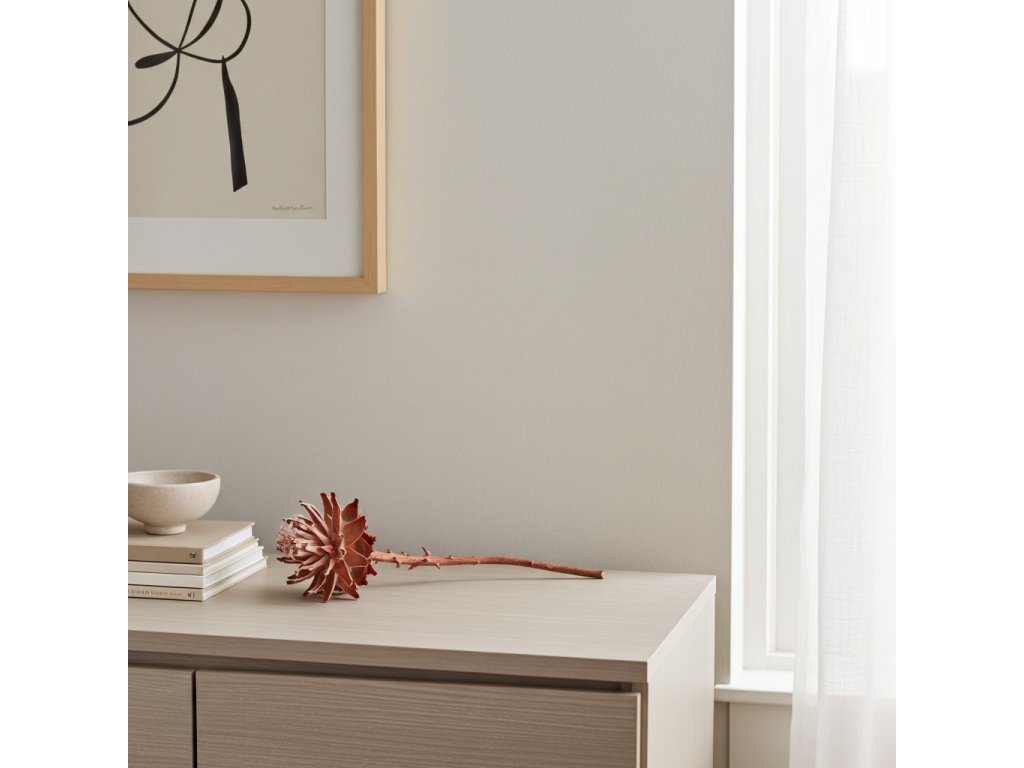 Fialový Plumosum krásně funguje jako barevný prvek, který dodá kompozici jemnou eleganci, nebo jako kontrastní prvek k neutrálním a pastelovým tónům.