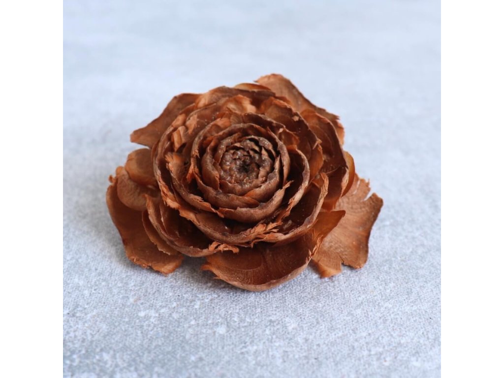Cedrová růže v hnědém odstínu je přírodní dekorace s výraznou strukturou, která dodá vašemu interiéru příjemný přírodní nádech. Skvěle se hodí do věnců, kytic i rustikálních či boho dekorací. Je ideální pro všechny, kdo hledají originální a trvanlivý přírodní prvek pro své kreativní projekty. Výborně se kombinuje s dalšími sušenými květinami pro dokonalou harmonii.
