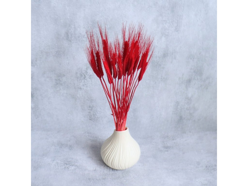 Pšenice vousatá v červené barvě je skvělou volbou pro ty, kteří hledají přírodní a výrazné dekorační prvky. Tato sušina se vyznačuje svou dlouhou a jemnou texturou klasu, která je ideální pro dekorace do vázy, kytice, květinová aranžmá nebo věnce. Červená barva přidává do každé dekorace teplý a vášnivý nádech, který oživí jakýkoli prostor.