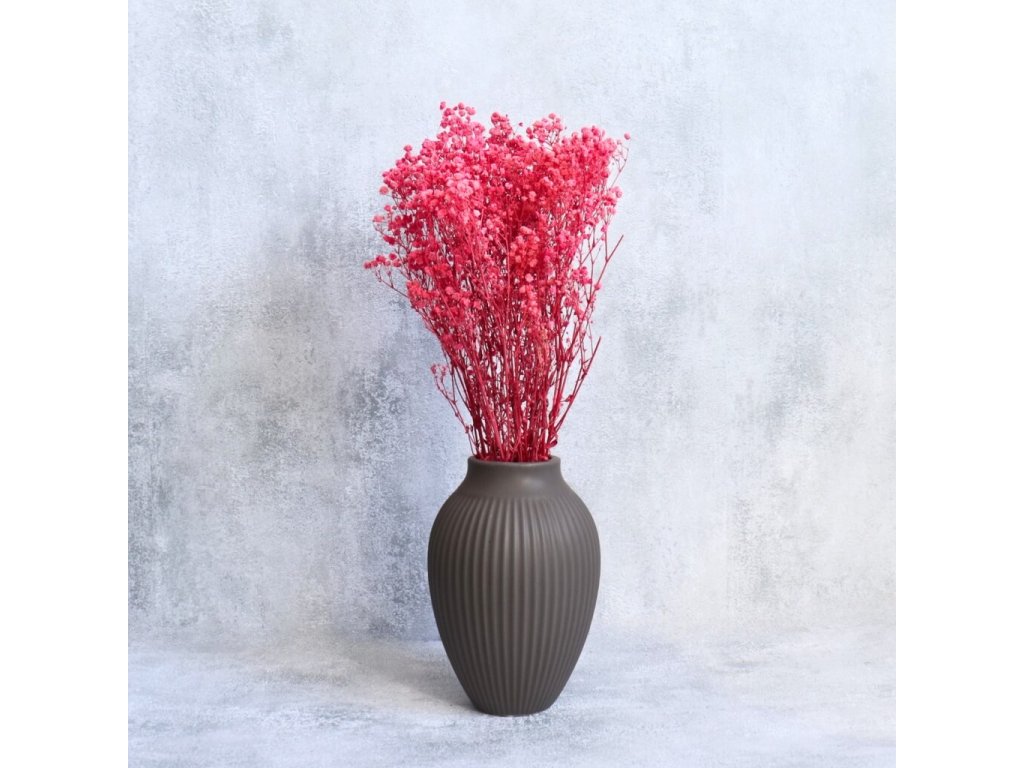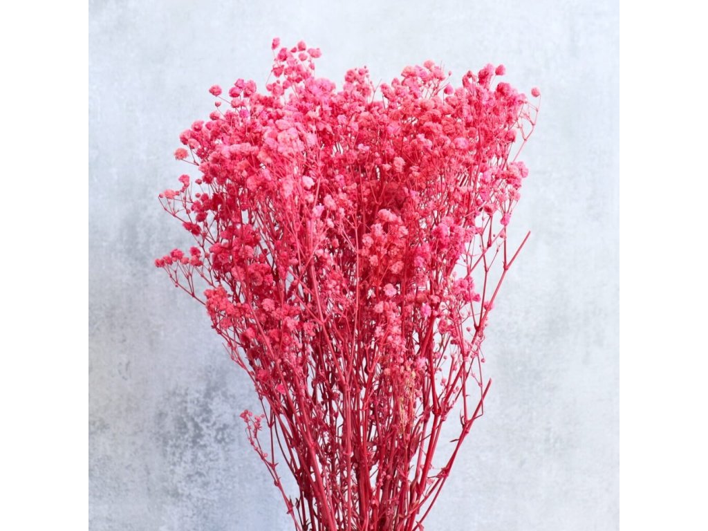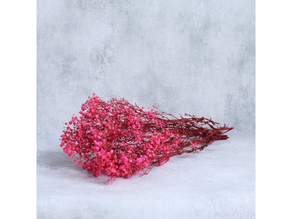 Tmavě růžová stabilizovaná gypsophila vnese do vašich dekorací sytý odstín a romantický nádech. Jemné drobné kvítky působí lehce a vzdušně, zatímco výrazná barva přináší hloubku a eleganci. Hodí se do svatebních kytic, věnců, stolních aranžmá i interiérových dekorací. Díky procesu stabilizace si květina uchová svou krásu i bez údržby po mnoho měsíců.