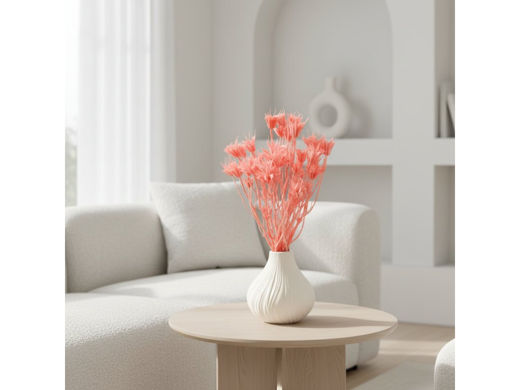 Růžová Nigella je ideální volbou, pokud chcete do aranžmá přidat jemnou barvu a zajímavou strukturu bez ztráty přirozenosti. Její dekorativní tobolky působí lehce a hravě, díky čemuž krásně doplní další sušené květiny, traviny i minimalistické kompozice. Růžový odstín přináší do dekorací romantiku, svěžest a moderní eleganci.