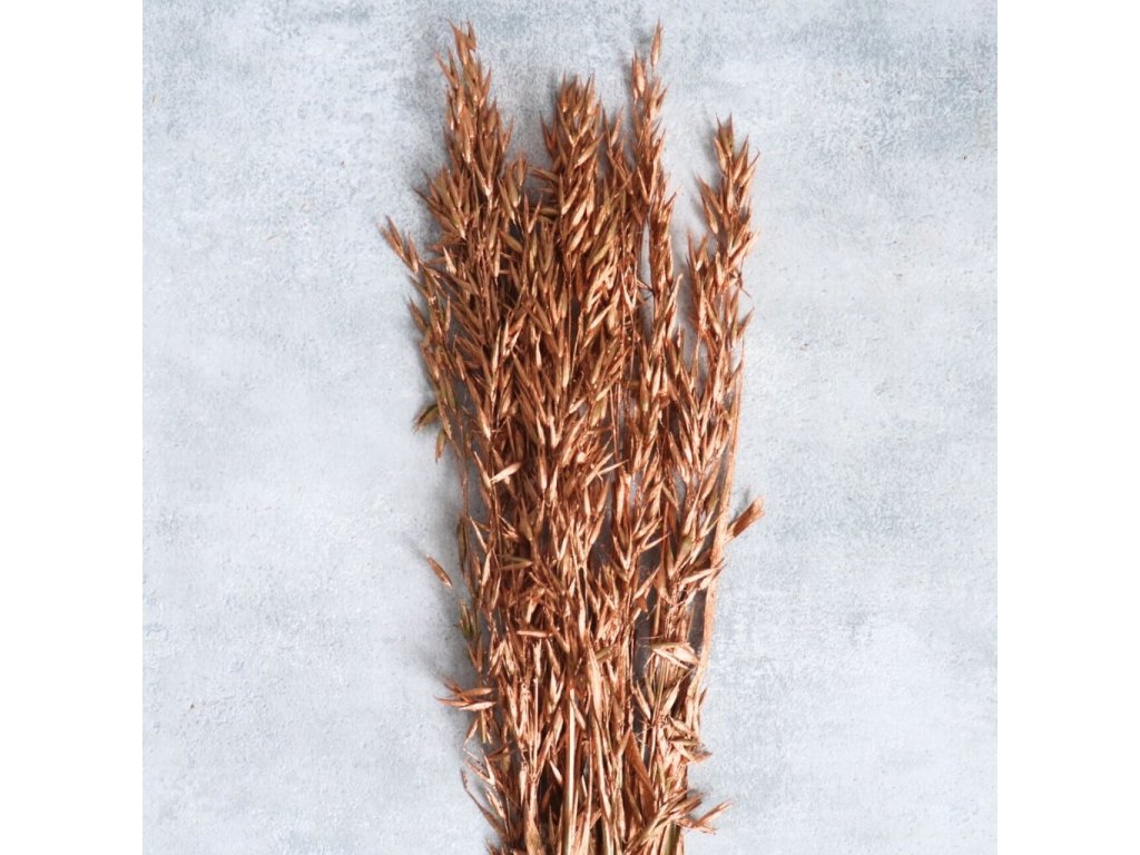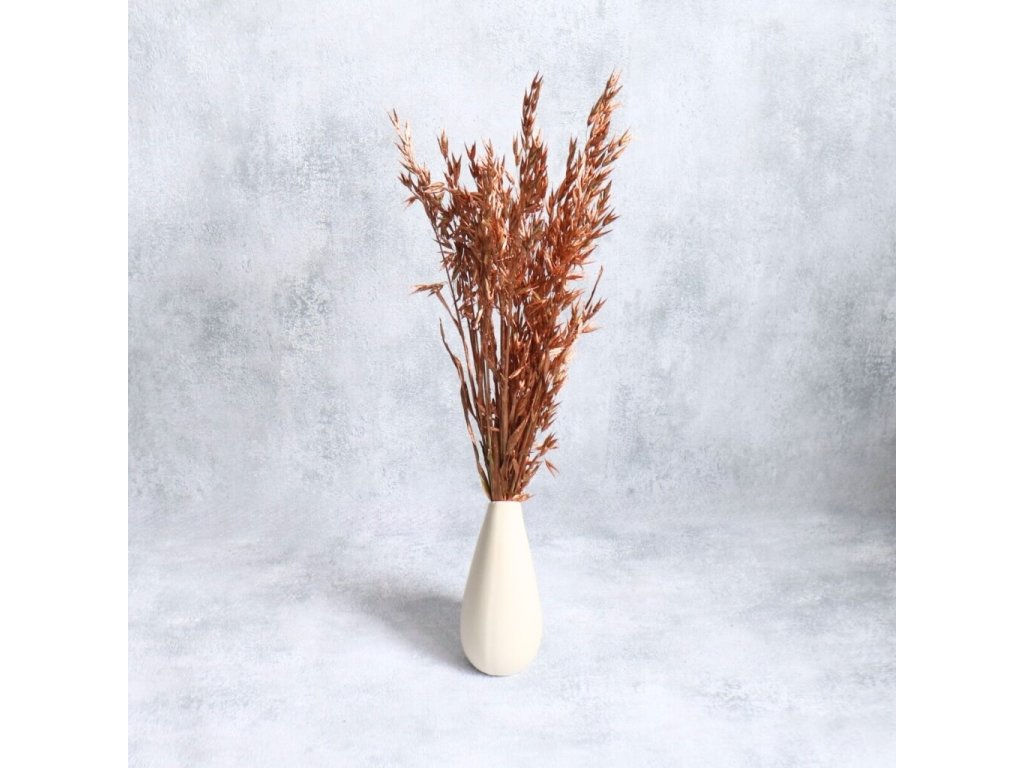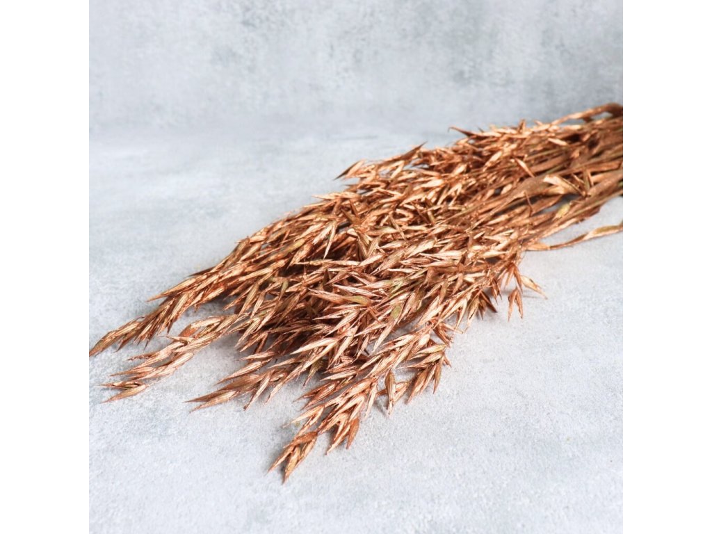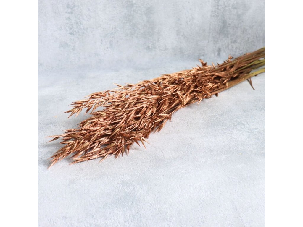 Sušený Oves v jemném bronzovém odstínu vnese do vašich dekorací hřejivou eleganci a sofistikovaný nádech. Její nadýchané klasy působí lehce a vzdušně, zatímco bronzová barva dodá každému aranžmá přírodní hloubku a slavnostní šarm.