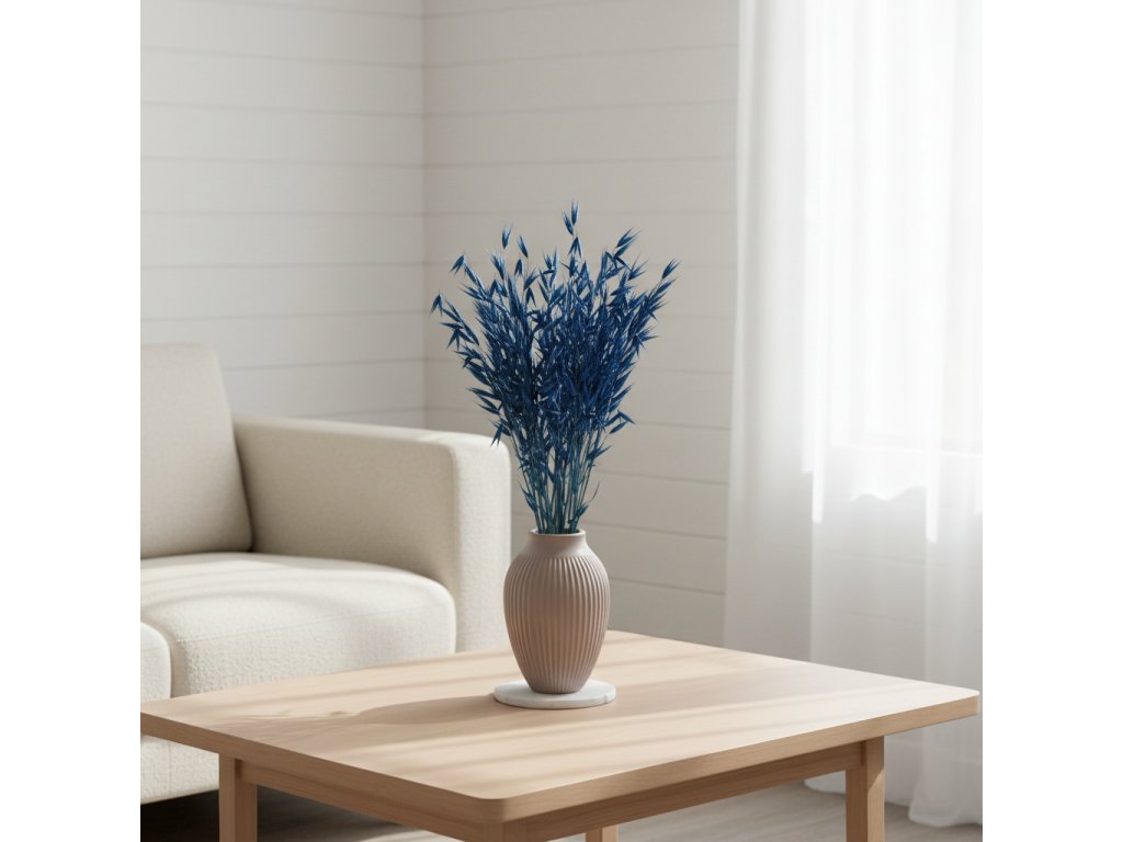 Sušená Avena Selvatica v modrém odstínu vnese do aranžmá lehkost, pohyb a neotřelý barevný prvek. Její tenké stébla a jemné klásky vytvářejí přirozený, vzdušný efekt, který krásně doplní sušené květiny i další traviny.
