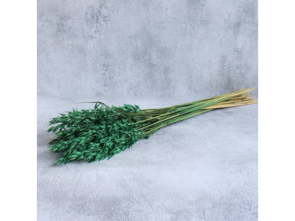 Tmavě zelená Avena je doplňkem, který do vašich aranžmá vnese klid, hloubku a přirozenou eleganci. Její výrazná barva v kombinaci s jemnou strukturou klasů krásně vynikne ve váze i jako součást kytic, věnců nebo rustikálních a podzimních výzdob.