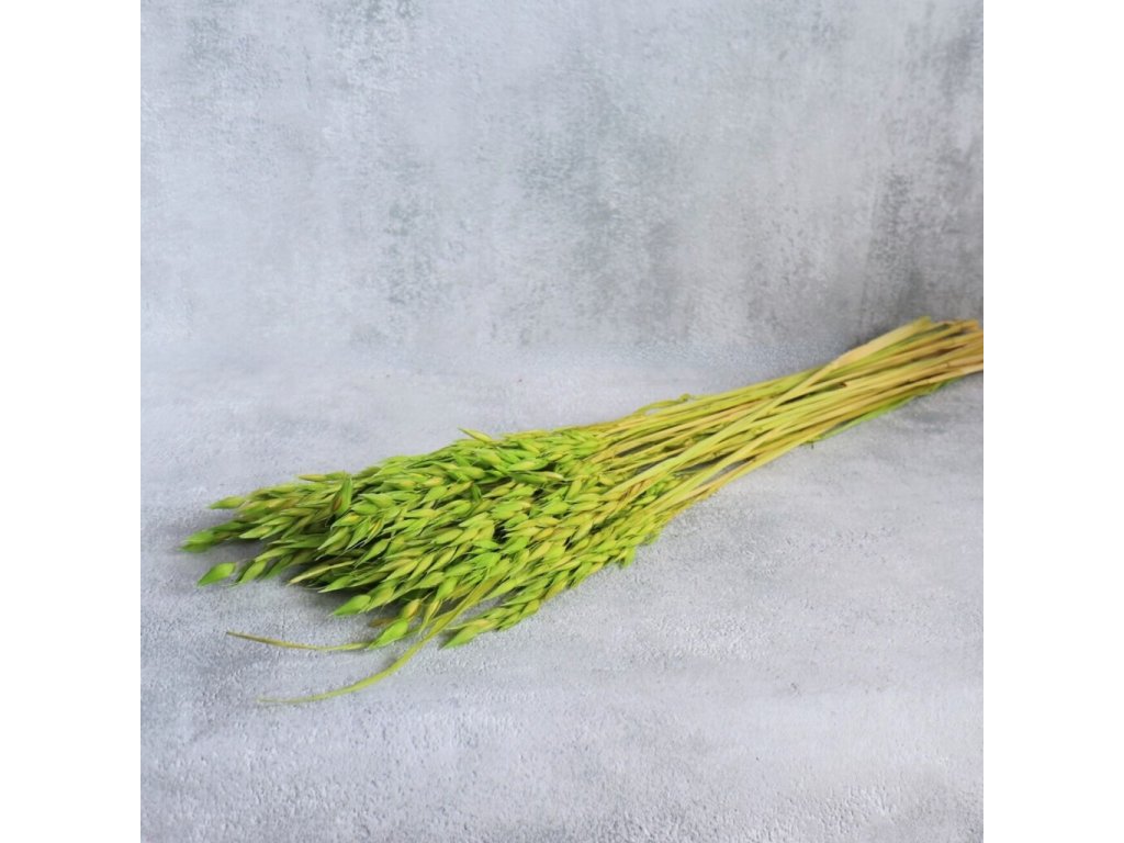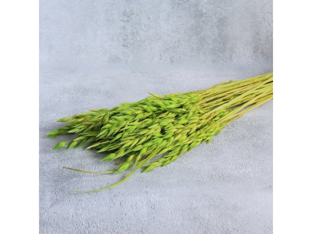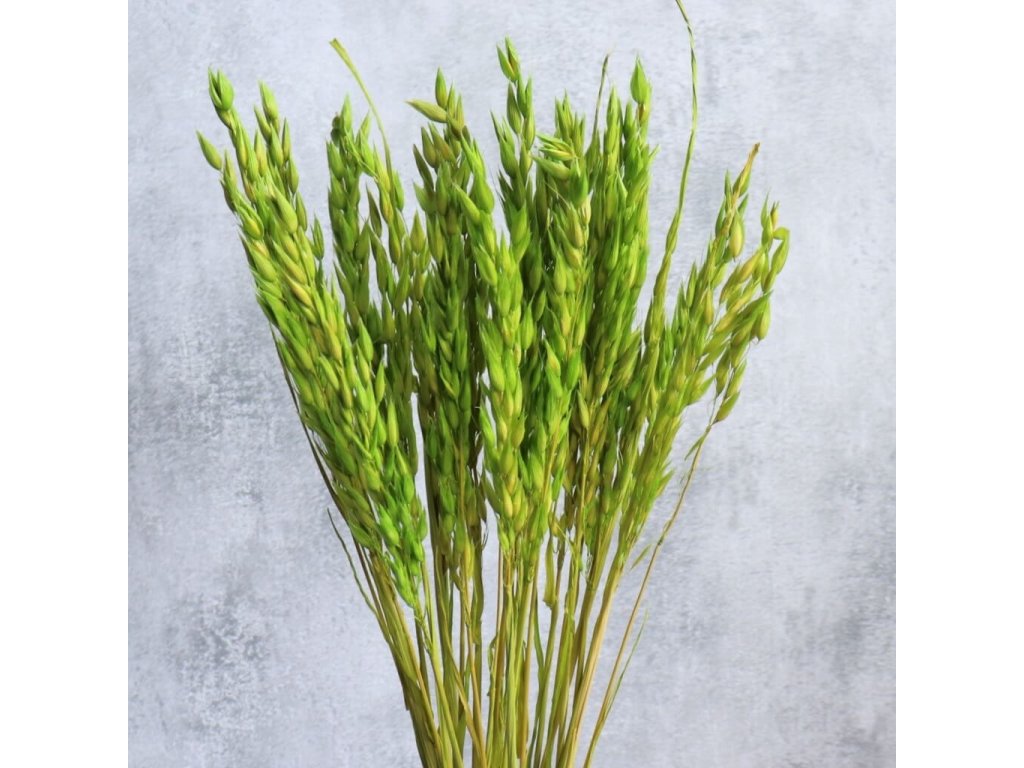 Světle zelený oves přináší do každé dekorace nádech přírodní svěžesti. Jemné obilné klasy v tlumeném zeleném odstínu působí elegantně a skvěle doplňují rustikální, boho i moderní výzdobu. Vynikne samostatně ve váze i jako součást větších kompozic s dalšími sušenými květinami.