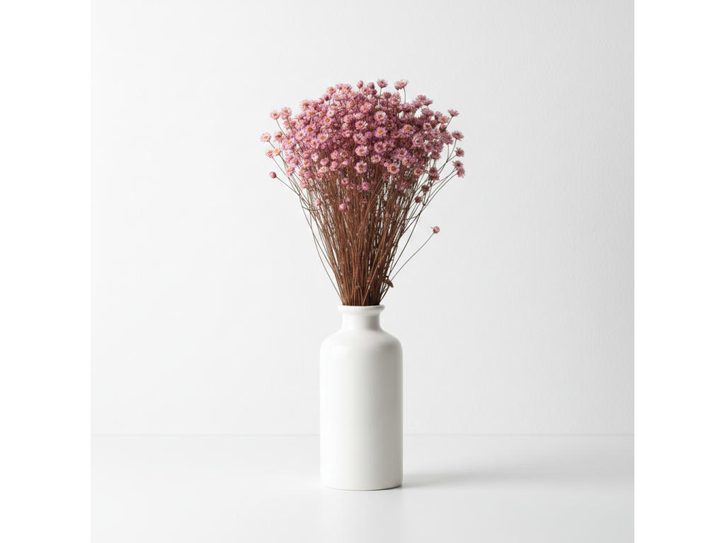 Velkou výhodou sušených květin je jejich dlouhá životnost – sušená glixia vydrží krásná mnoho měsíců až let a nevyžaduje žádnou speciální péči.