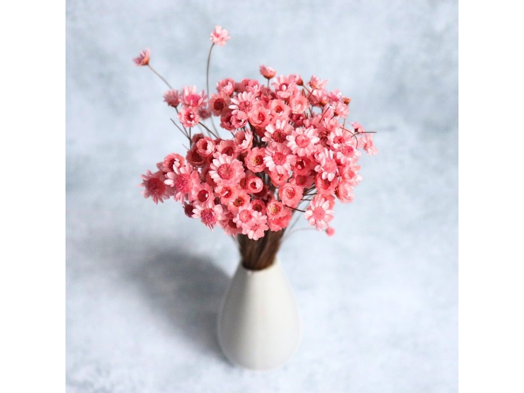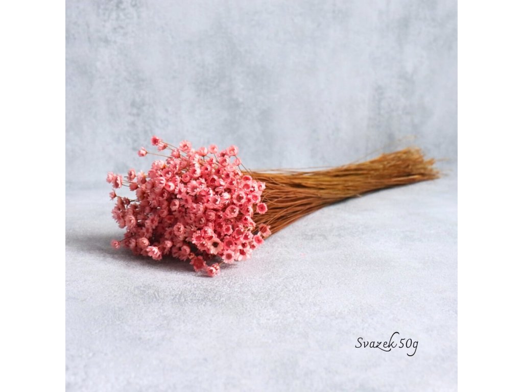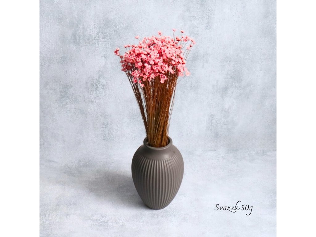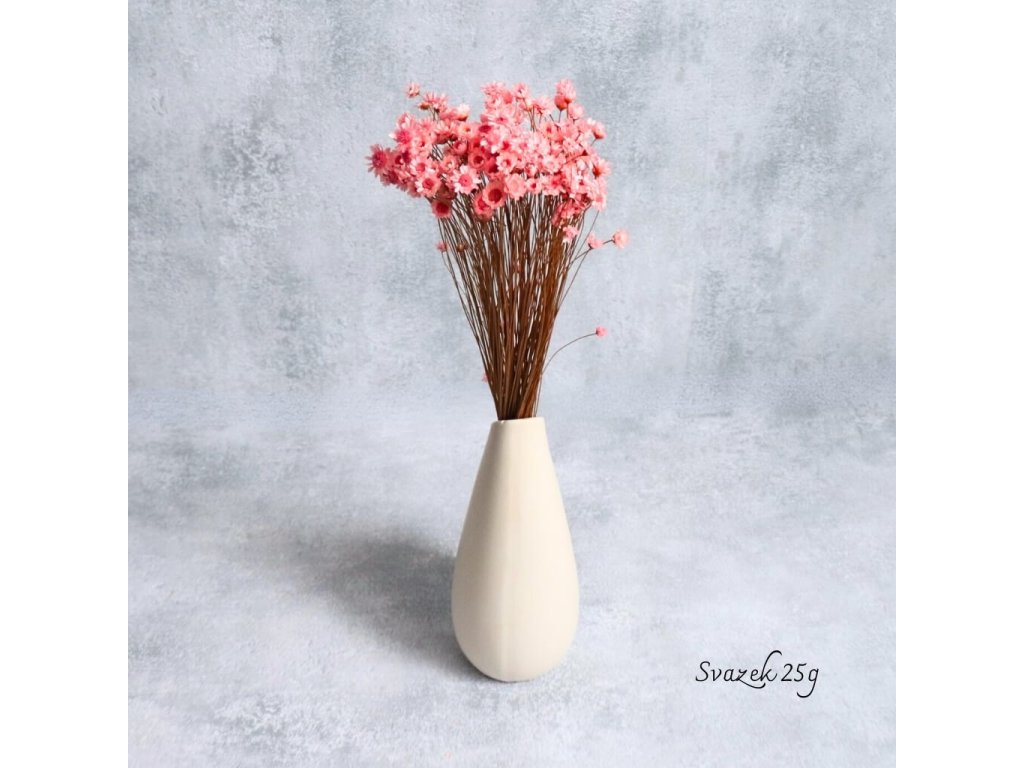 Sušená Glixia v tmavě růžovém odstínu je výrazným a přitom jemným doplňkem pro květinová aranžmá i dekorace. Drobná kvítka a sytější barva dodávají kompozicím hloubku, romantiku a elegantní barevný kontrast. Skvěle se hodí do svatebních kytic, věnců, stolních aranžmá i moderních přírodních dekorací.