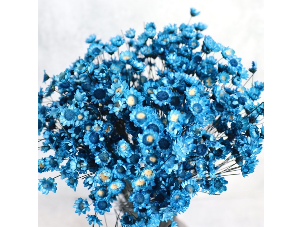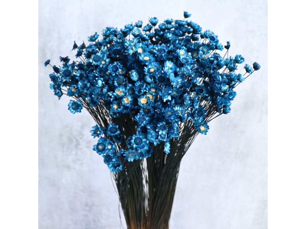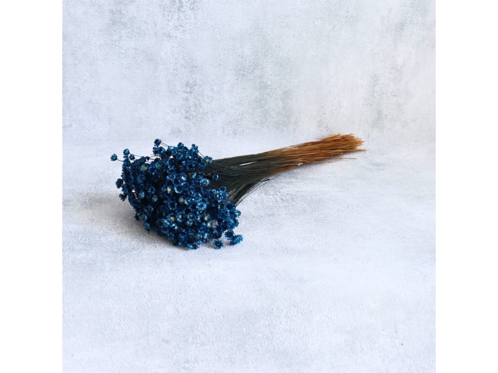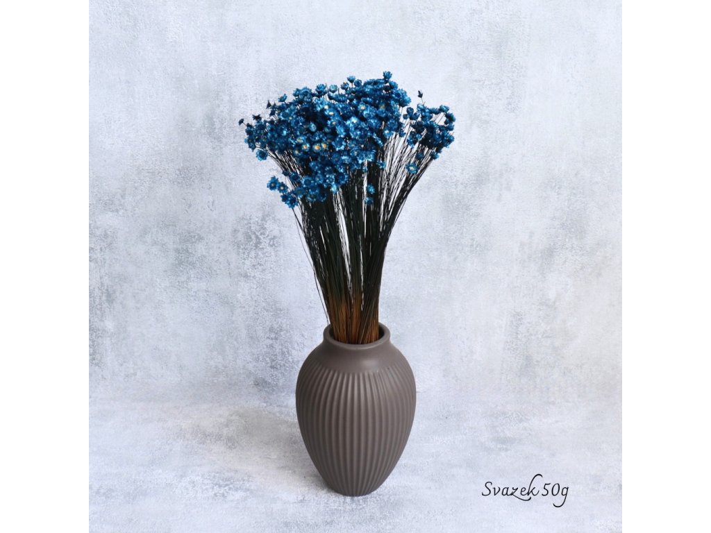 Sušená Glixia v sytě tmavě modrém odstínu je elegantní a netradiční doplněk pro všechny, kdo hledají dekoraci s hlubším výrazem. Drobné květy působí jemně a vzdušně, zatímco intenzivní modrá barva dodává aranžmá charakter, kontrast a originalitu.