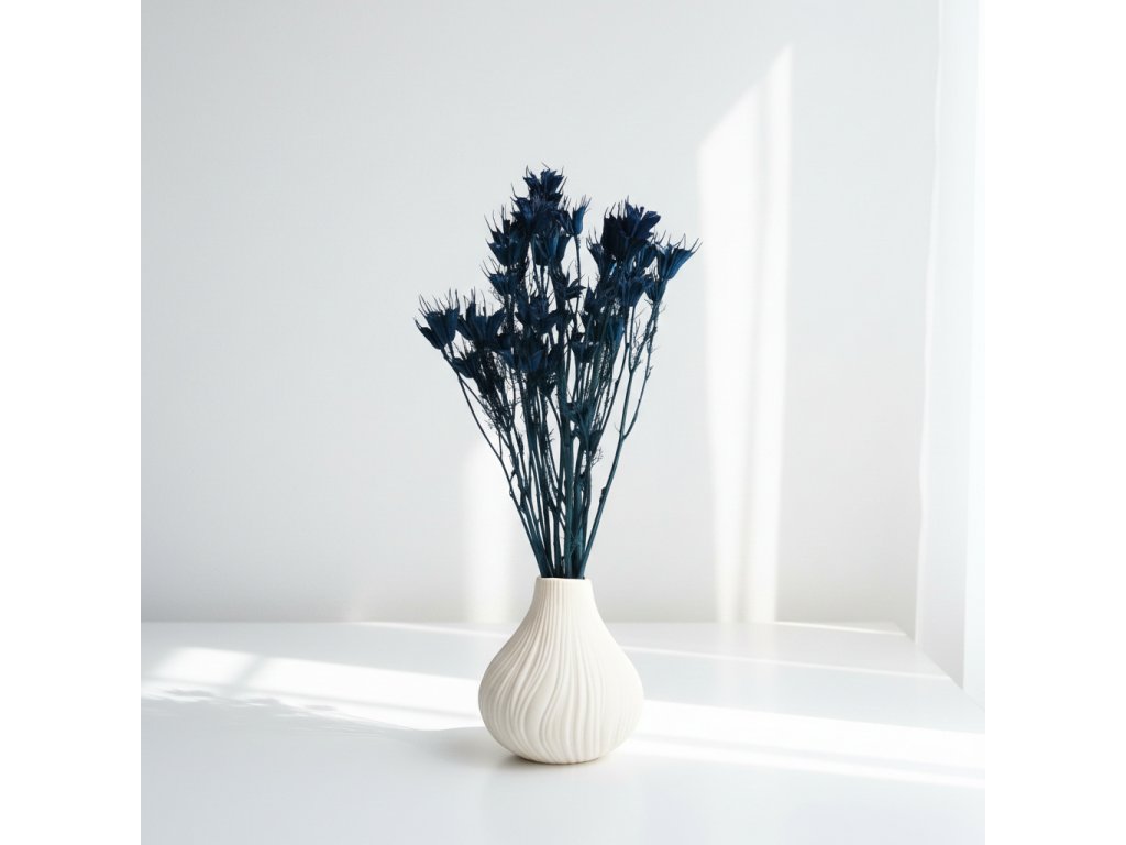 Sušená Nigella v tmavě modrém odstínu vnese do vašich aranžmá hloubku a sofistikovaný nádech. Její jemné, zvonečkové květy dodávají dekoracím originální strukturu a jedinečný vzhled.