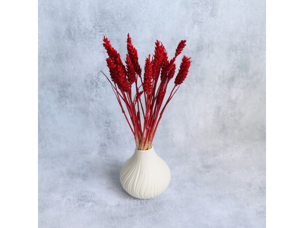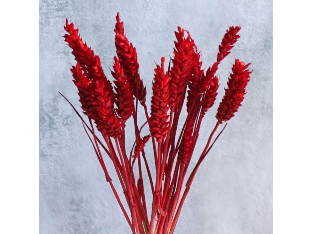 Sušená pšenice v sytém bordo odstínu přináší do aranžmá sofistikovaný a bohatý vzhled. Její hluboká barva skvěle doplní přírodní tóny i moderní barevné kombinace. Výrazná barva se hodí do podzimních či zimních dekorací, například věnců nebo kytic, ale i pro DIY projekty – stolní dekorace, girlandy či dárkové balení. Perfektní volba pro rustikální i elegantní aranžmá.