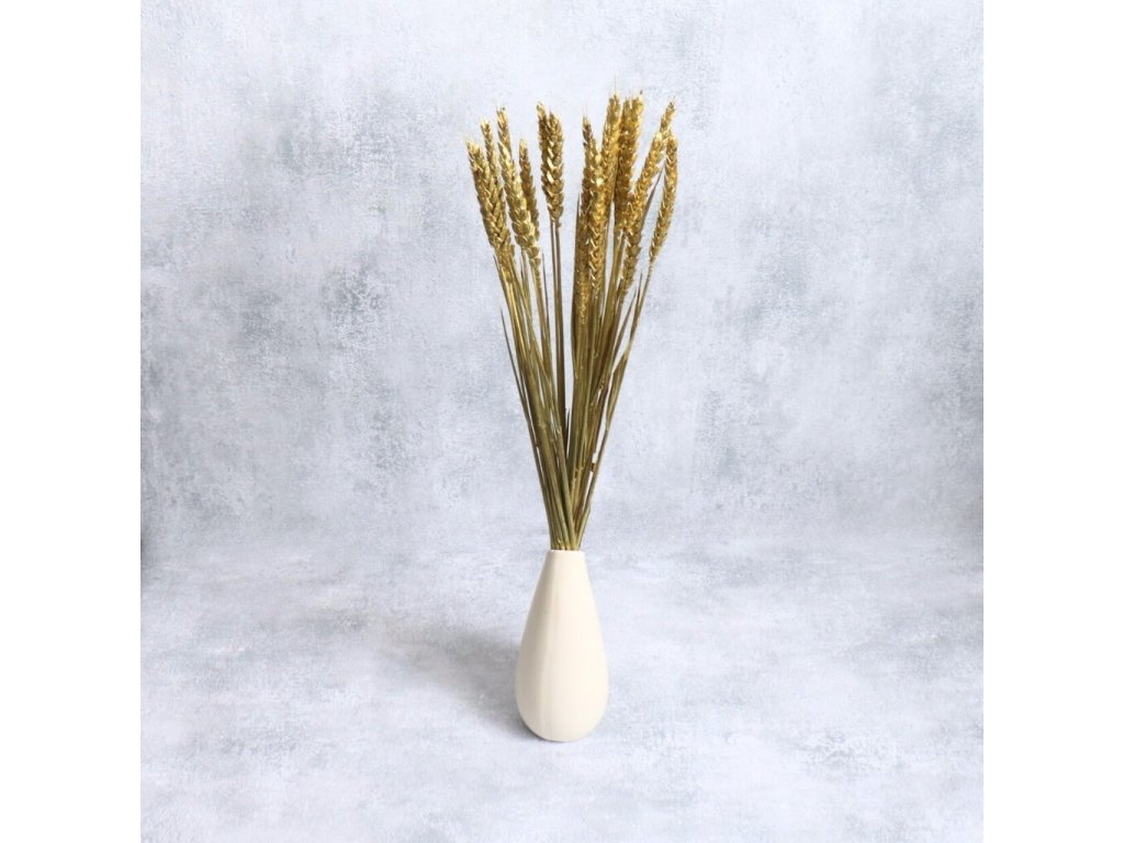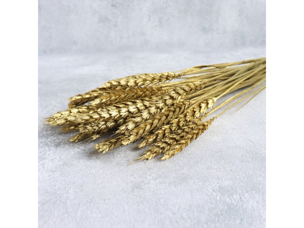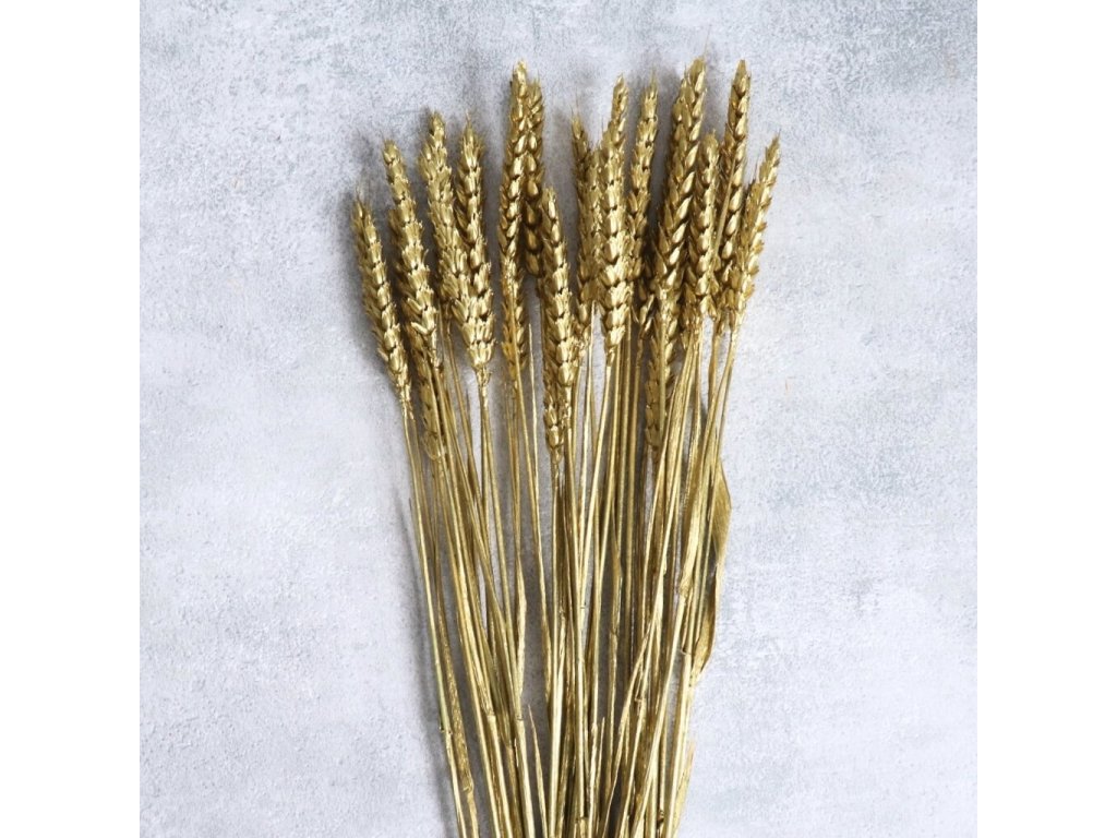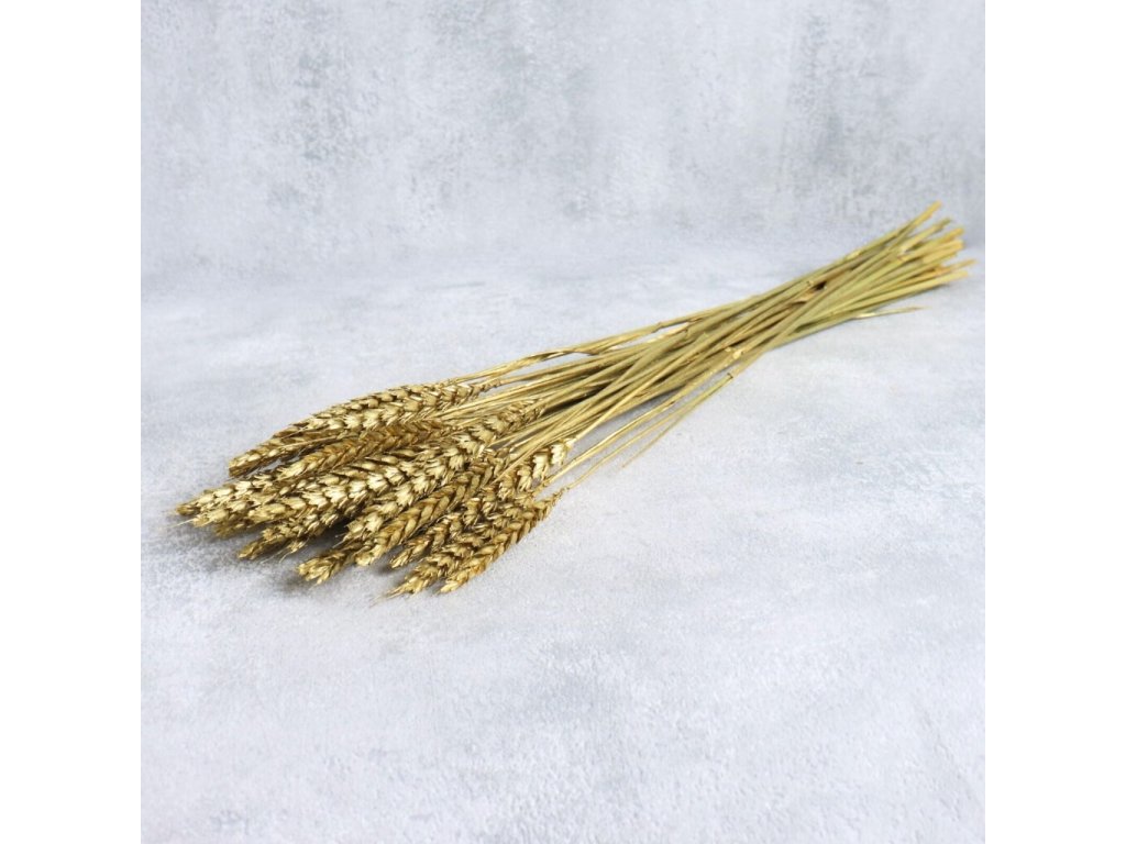 Sušená Pšenice v bohatém zlatém odstínu vnese do vašich aranžmá teplo, eleganci a nádech sváteční atmosféry. Její přirozeně tvarované klasy působí plně a harmonicky, zatímco zlatý lesk dodá každé dekoraci slavnostní kouzlo a luxusní nádech.