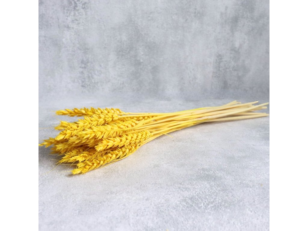 Sušená pšenice v teplé žluté barvě je skvělým doplňkem pro přírodní, rustikální i jarní dekorace. Přináší svěžest a elegantní texturu do svatebních kytic, věnců nebo interiérů. Je lehká, nevyžaduje žádnou údržbu a díky sušení si dlouho zachovává krásu i barevnost.