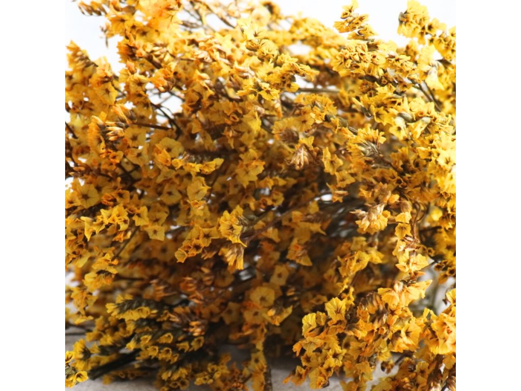 Statice, známá také jako limonka, ve žlutém odstínu rozzáří každou květinovou kompozici. Její drobné kvítky v teplé slunečné barvě přinášejí do dekorací energii, optimismus a pocit lehkosti.