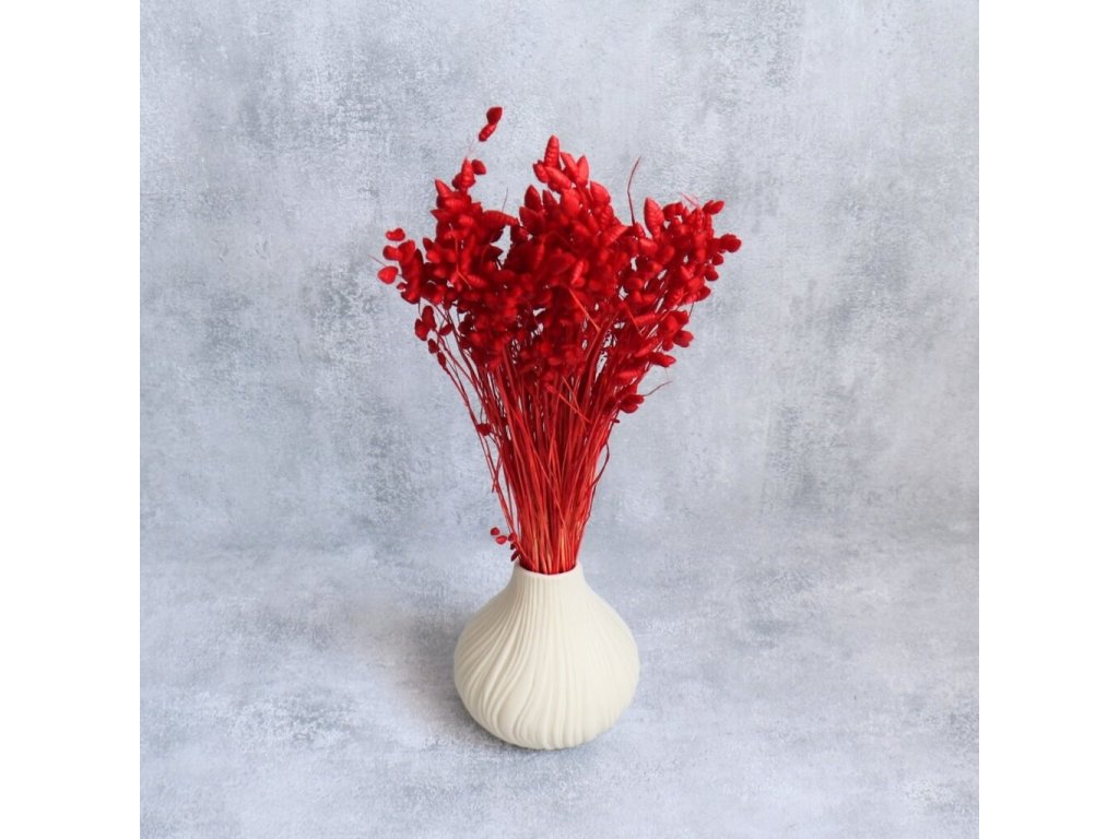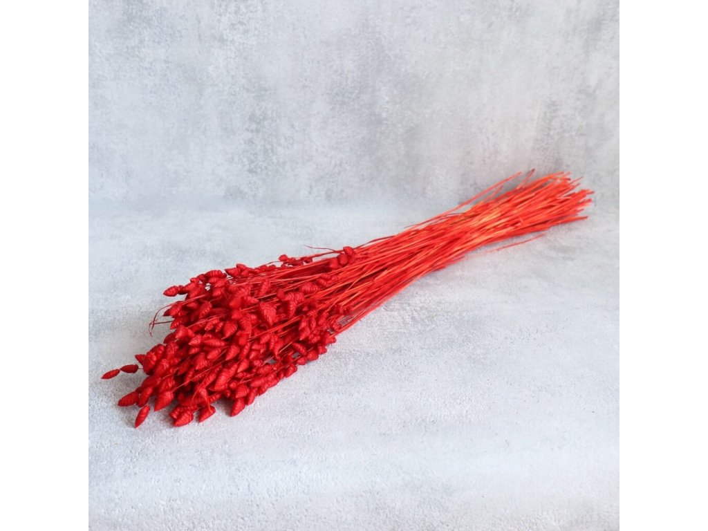 Sušená třesavá tráva Briza v intenzivním odstínu červené vnáší do aranžmá živost a energii. Její jemné klasy v tónech červené dodávají dekoracím dynamiku a teplý, výrazný akcent, ideální pro podzimní a vánoční výzdobu. Hodí se do kytic, věnců i samostatně do vázy, kde zaujme svým přirozeným, ale poutavým vzhledem. Červená Briza vytváří hřejivý efekt a přidává každému prostoru osobitost a atmosféru.