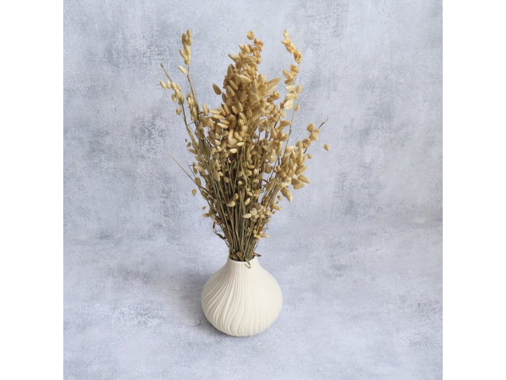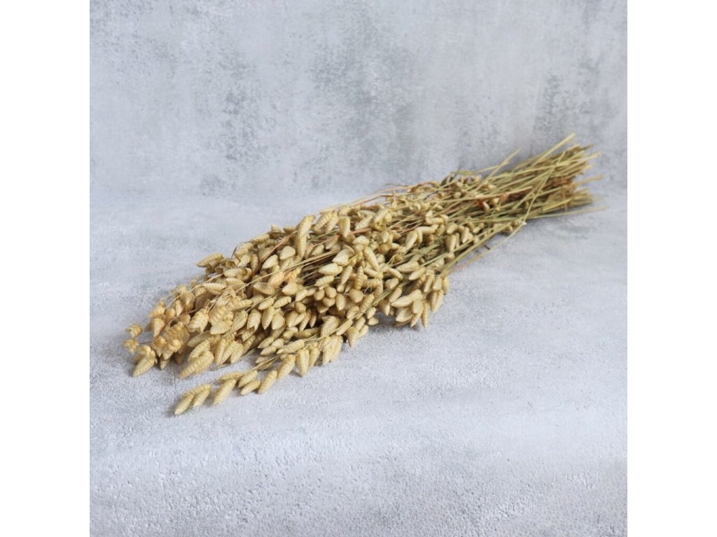 Sušená třesená tráva Briza je jemná a elegantní tráva s charakteristickými třesoucími se klasy, které přinášejí do interiéru pocit lehkosti a pohybu. V přírodním odstínu natur působí velmi přirozeně a snadno doplní jak rustikální, tak moderní dekorace.