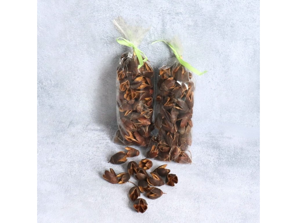 Sušené plody Bakuli v přírodní barvě dodají vašim aranžmá jedinečný rustikální vzhled. Díky své originální struktuře a přírodním hnědým odstínům jsou ideální do věnců, ikeban nebo jako výplň do dekoračních misek. Skvěle ladí s dalšími přírodními materiály, jako je juta, mech nebo dřevo. Vhodné pro celoroční dekorace i sezónní tvoření.