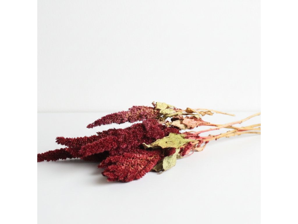 Amarant si sušením zachovává přirozený vzhled i texturu a vydrží krásný po dlouhé měsíce bez nutnosti péče. Výborně se kombinuje s dalšími přírodními i stabilizovanými rostlinami, jako je eukalyptus, lagurus nebo gypsophila, a stane se výrazným akcentem každého aranžmá.