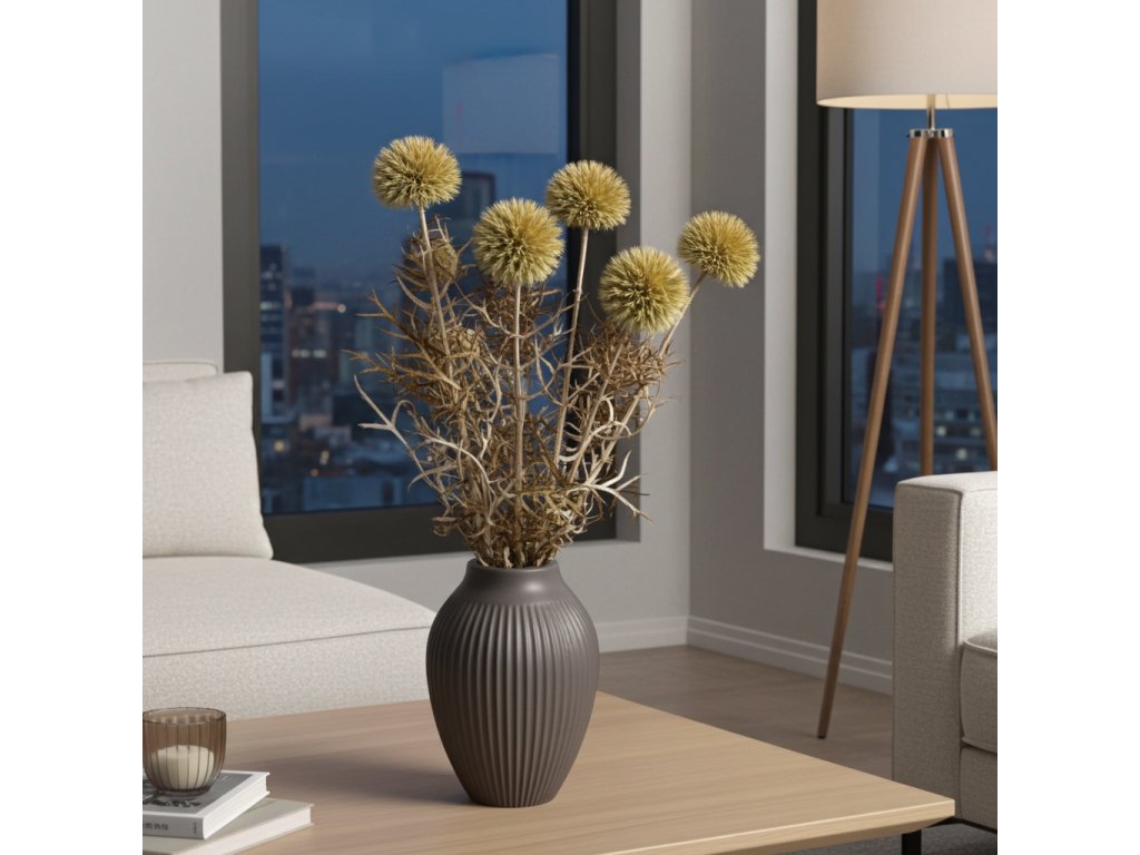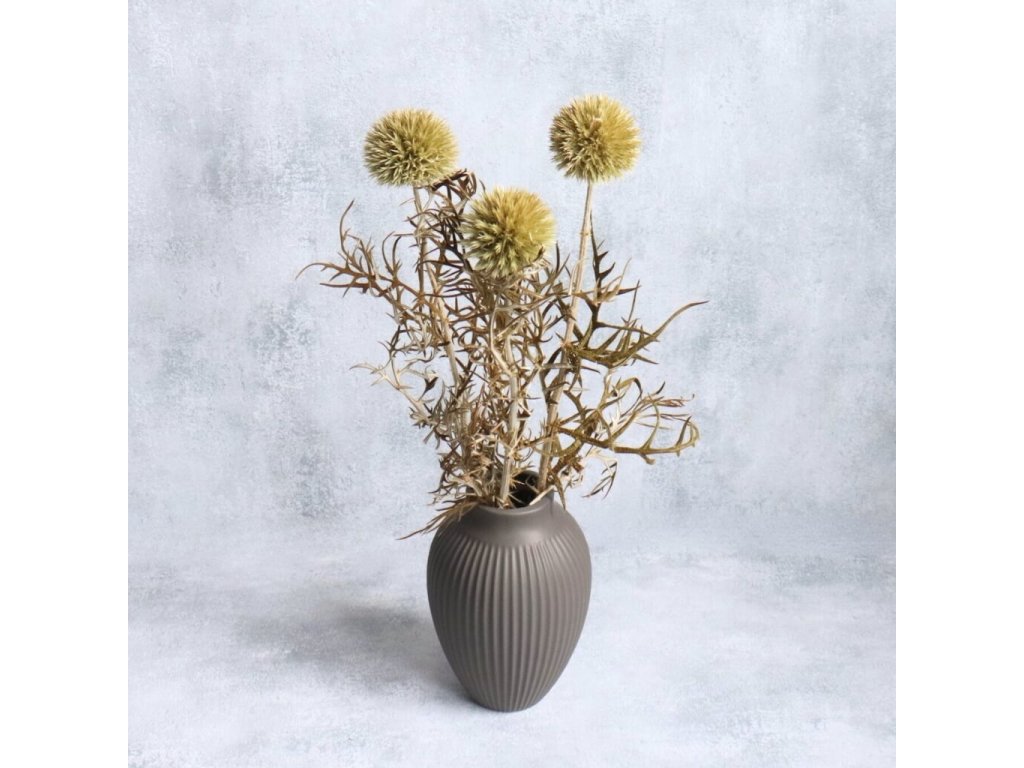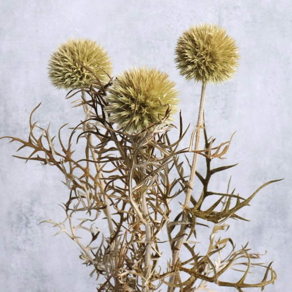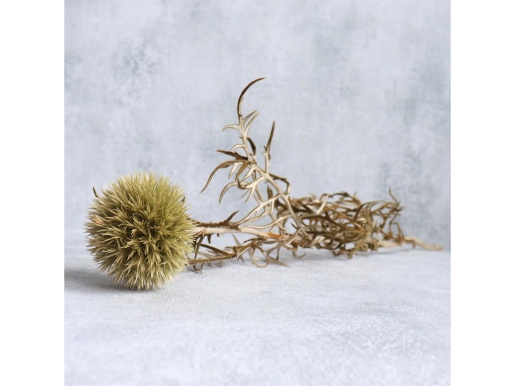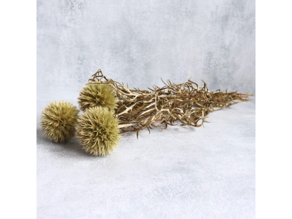 Sušený bodlák Echinops, známý také jako bělotrn, v přírodním odstínu je výrazným a zároveň elegantním doplňkem do jarních i velikonočních dekorací. Jeho kulovité květy a jemně pichlavá struktura dodávají aranžmá zajímavý kontrast, hloubku a přirozený charakter.