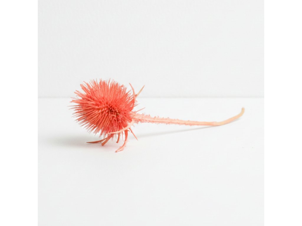 Sušený mini bodlák v romantickém růžovo-lososovém odstínu je ideálním prvkem pro jemné a stylové dekorace. Jeho drobné květy dodávají aranžmá vzdušnost a sofistikovanost, díky čemuž je perfektní pro svatební dekorace, sušené kytice, věnce i interiérová aranžmá. Tento přírodní produkt si zachovává svůj půvab dlouhou dobu, nevyžaduje žádnou péči a skvěle se kombinuje s dalšími sušenými květinami, jako je Eukalyptus, Gypsophila nebo Lagurus. Jemná barva přináší do prostoru nádech romantiky a elegance, čímž vytvoří harmonické a nadčasové aranžmá.