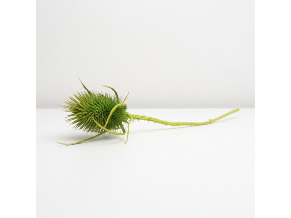 Sušený bodlák v zeleném odstínu vnese do aranžmá svěžest a přirozenou hloubku. Jeho charakteristický tvar a pevná textura dodávají dekoraci strukturu a vizuální dynamiku, která krásně kontrastuje s jemnými travinami i ostatními sušenými květinami. Zelená barva přináší do interiéru pocit vitality a harmonie a snadno se kombinuje s neutrálními i výraznějšími tóny.