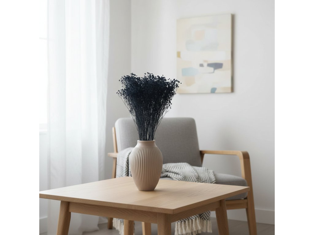 Tmavě modrý Broom Bloom je ideální pro tvorbu sušených kytic, věnců i interiérových dekorací, kde chcete dosáhnout elegantního a neotřelého vzhledu. Krásně vynikne v kombinaci se světlými odstíny pro kontrast nebo s dalšími tmavšími tóny pro luxusní, dramatický efekt.