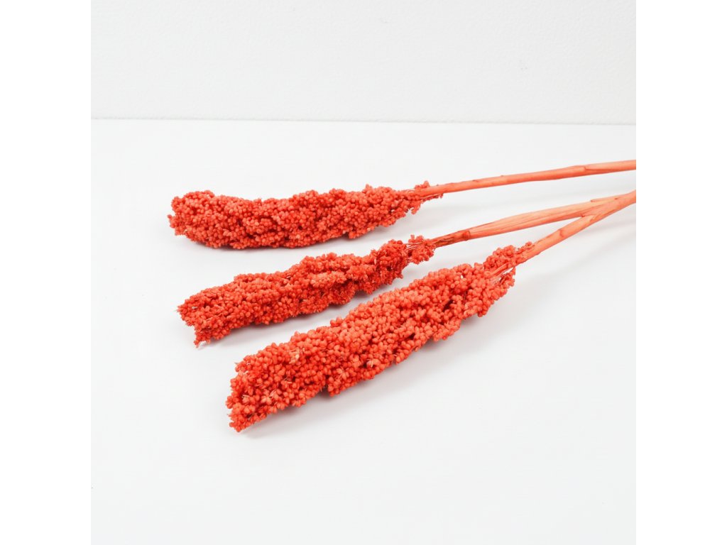 Čirok je odolný, tvarově stálý a bezúdržbový – ideální pro dlouhotrvající dekorace, které si zachovají svůj vzhled i intenzitu barvy.
