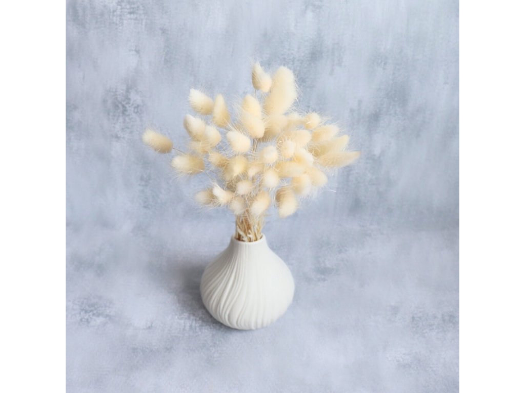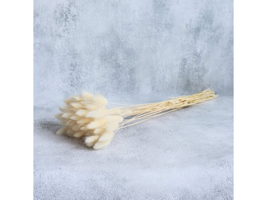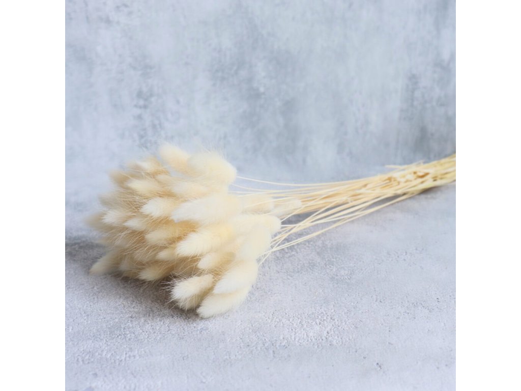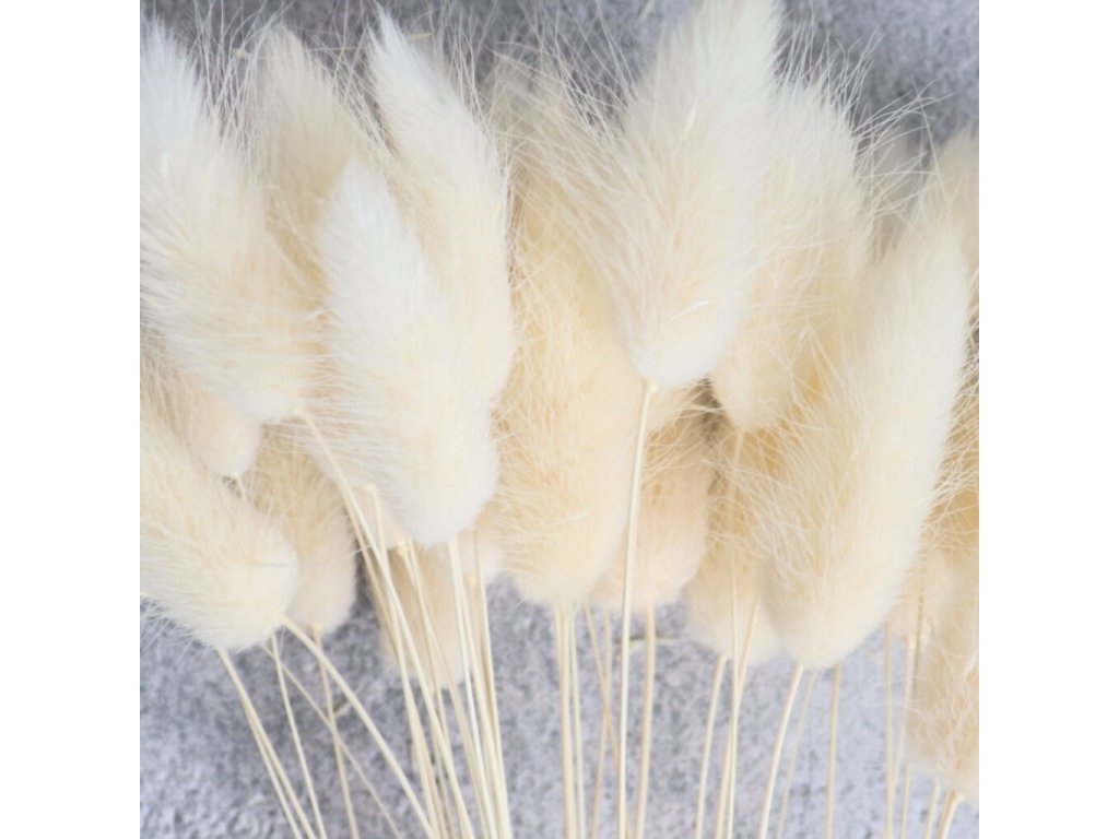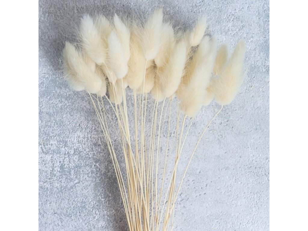 Sušený Lagurus – bělený je jemná dekorativní tráva s nadýchanými klásky, která díky svému elegantnímu bělenému vzhledu přidává do interiéru čistotu a světlost. Tato sušená rostlina je ideální pro tvorbu minimalistických, moderních a přírodních aranžmá. Lagurus, známý také jako „zaječí ocásek“, je velmi populární díky své jemné struktuře a přirozené kráse, která perfektně ladí s dalšími sušenými květinami nebo jako samostatný dekorační prvek.