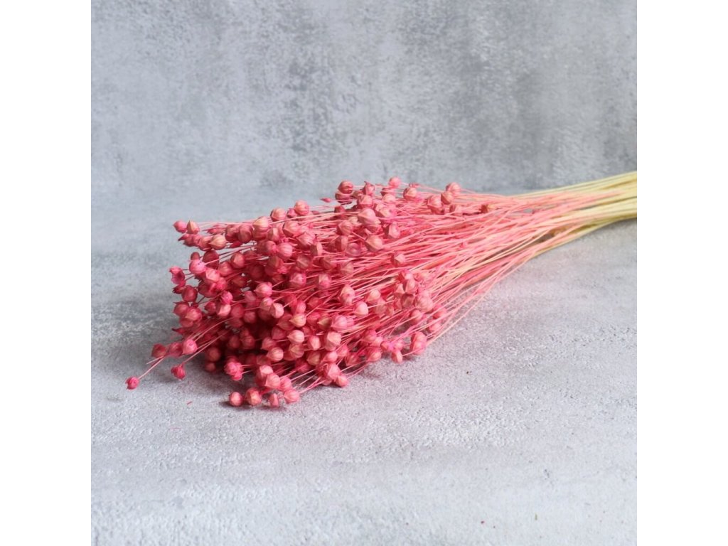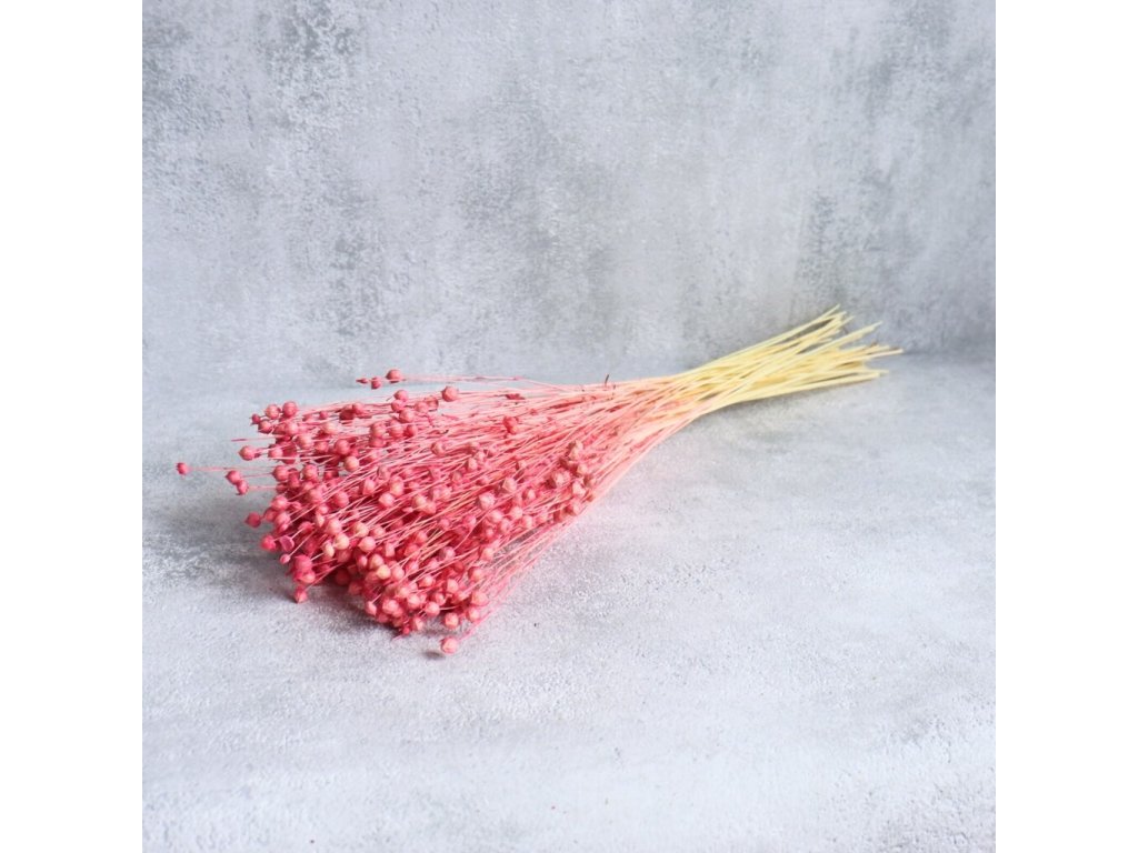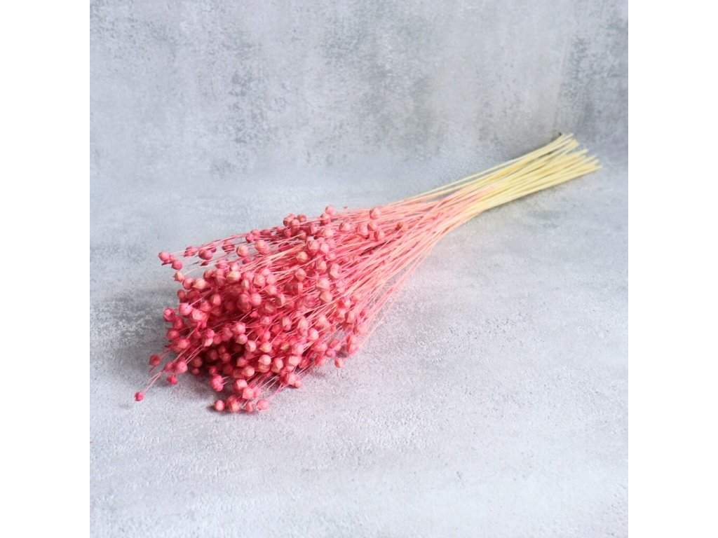 Sušený Len v něžné růžové barvě přináší do vašich dekorací jemný romantický nádech s výrazným akcentem. Tento přírodní materiál s drobnými květy je ideální pro kytice, věnce i samostatná dekorace do vázy. Skvěle se hodí pro jarní a letní aranžmá nebo jako samostatný estetický prvek v interiéru.