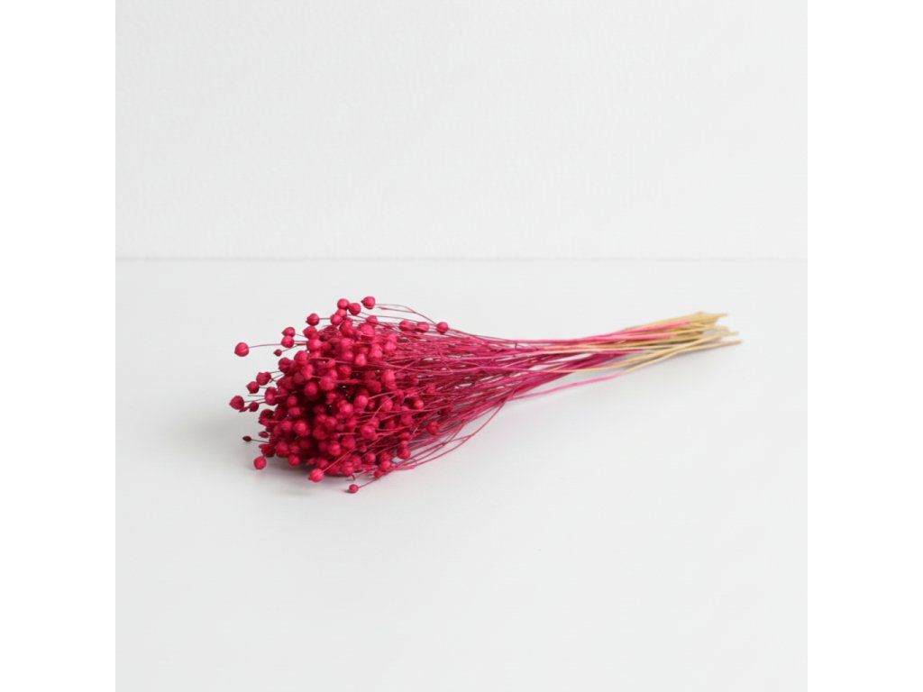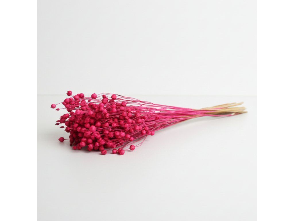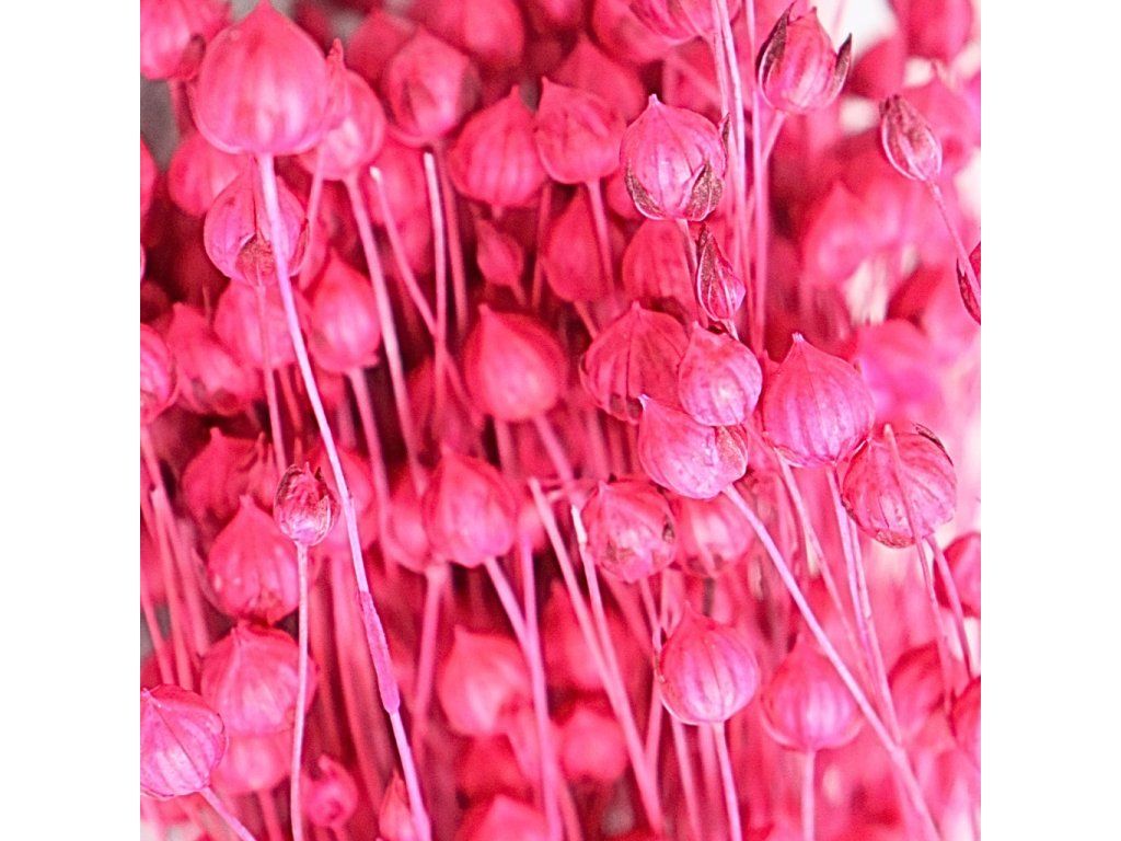 Růžový len vynikne samostatně ve váze, ale ještě více zaujme jako součást sušených kytic, věnců nebo svatebních dekorací. Tmavě růžový odstín se perfektně kombinuje s neutrálními barvami, travinami i dalšími sušenými květinami, jako je například eukalyptus.