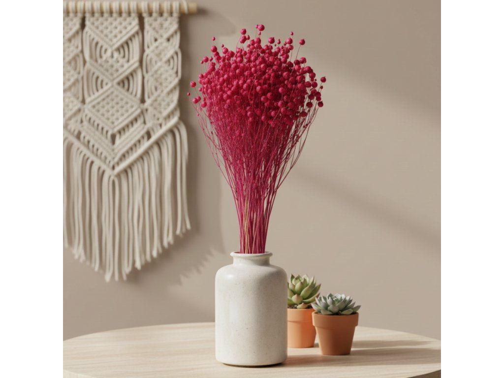 Tmavě růžový sušený len je skvělou volbou pro všechny, kdo chtějí do dekorací vnést výraznější romantiku, hloubku a elegantní barevný prvek. Jeho jemná struktura a pevné stonky vytvářejí nadýchaný efekt, který krásně doplní moderní i boho aranžmá.
